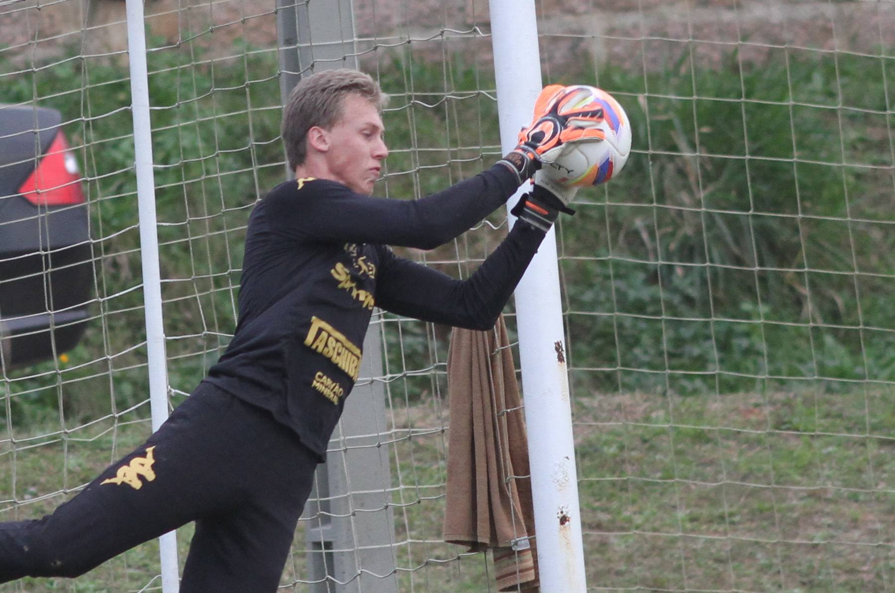 Legenda: Goleiro David durante treino do Criciúma na tarde desta segunda-feira (03/08), no Centro de Treinamento, no bairro Cristo Redentor