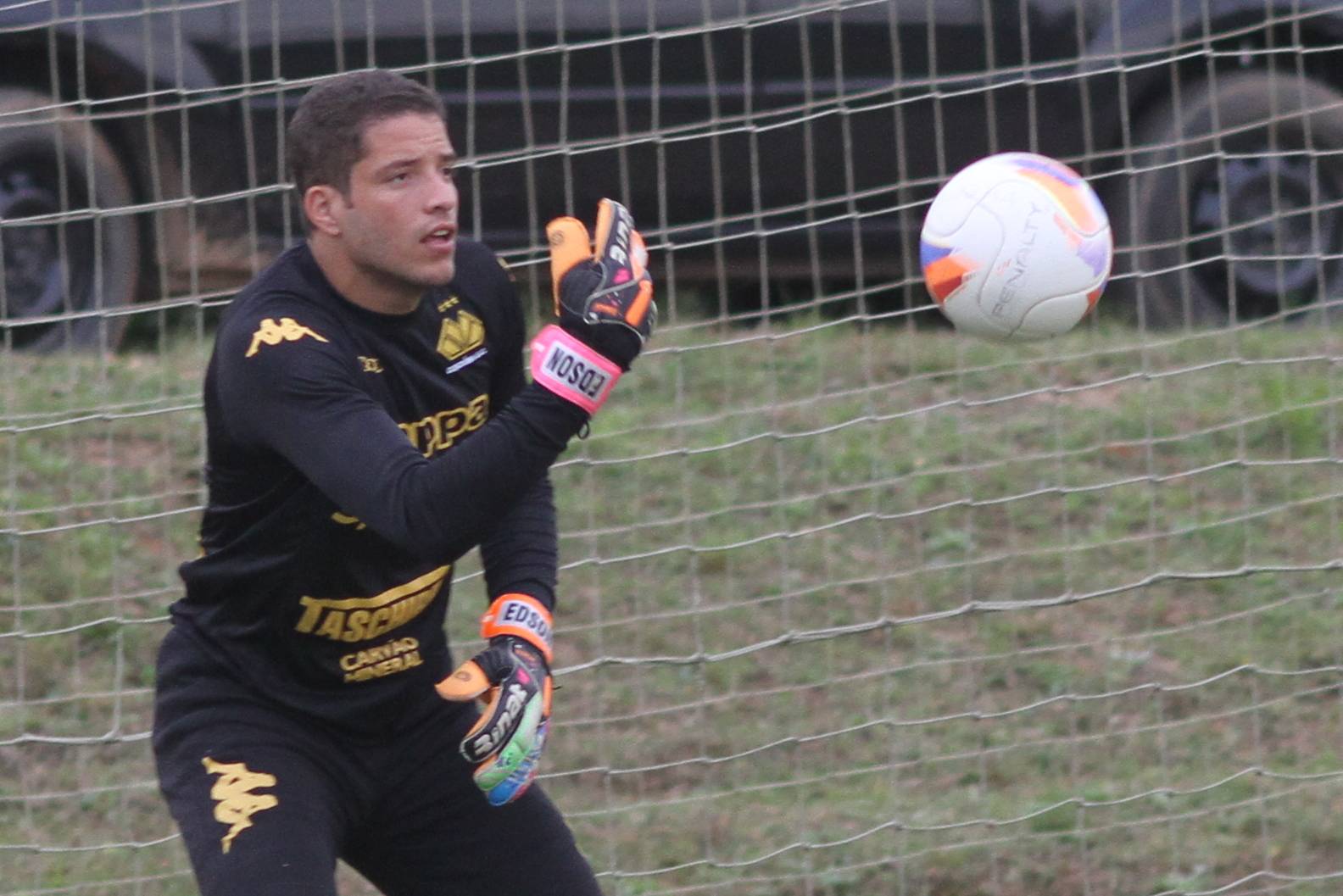 Legenda: Goleiro Edson durante treino do Criciúma na tarde desta segunda-feira (03/08), no Centro de Treinamento, no bairro Cristo Redentor