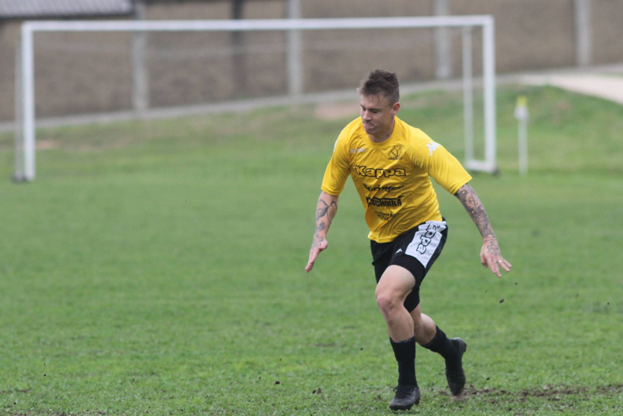 Legenda: Lateral esquerdo Guilherme Santos durante treino do Criciúma na tarde desta segunda-feira (03/08), no Centro de Treinamento, no bairro Cristo Redentor