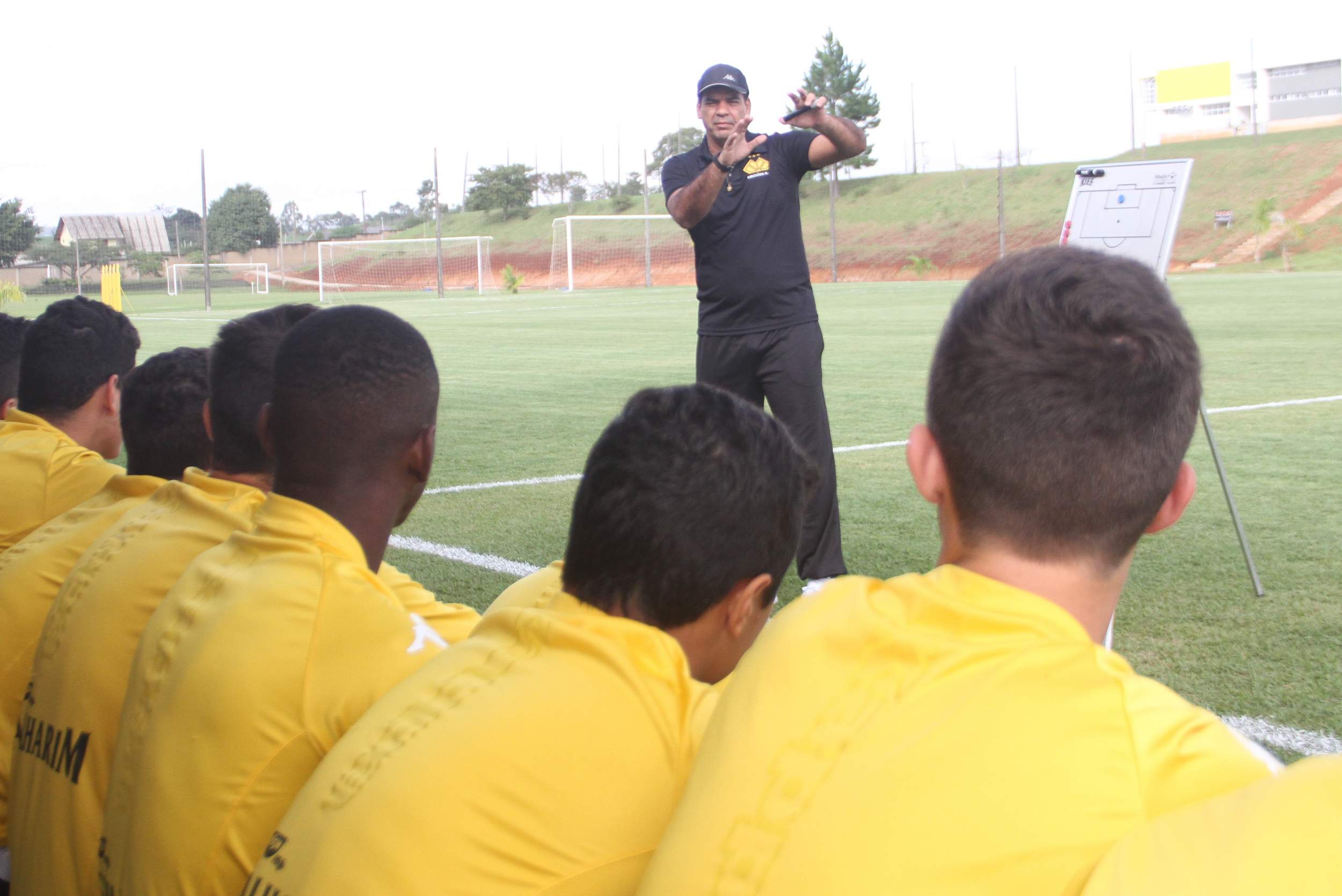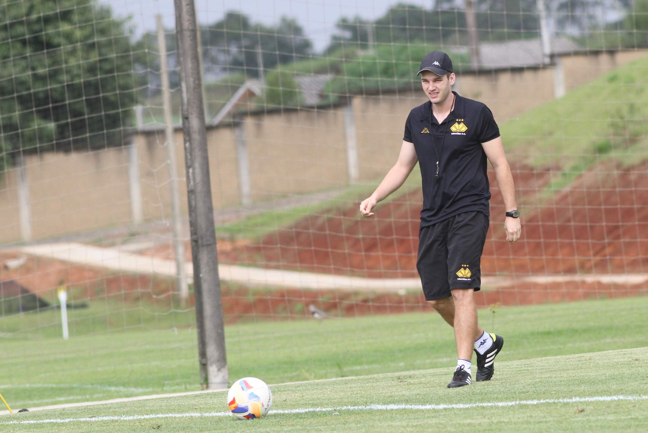 Legenda: Fisiologista Lucas Jorge durante treino do Criciúma na manhã desta quinta-feira (16/04) no Centro de Treinamento no bairro Cristo Redentor