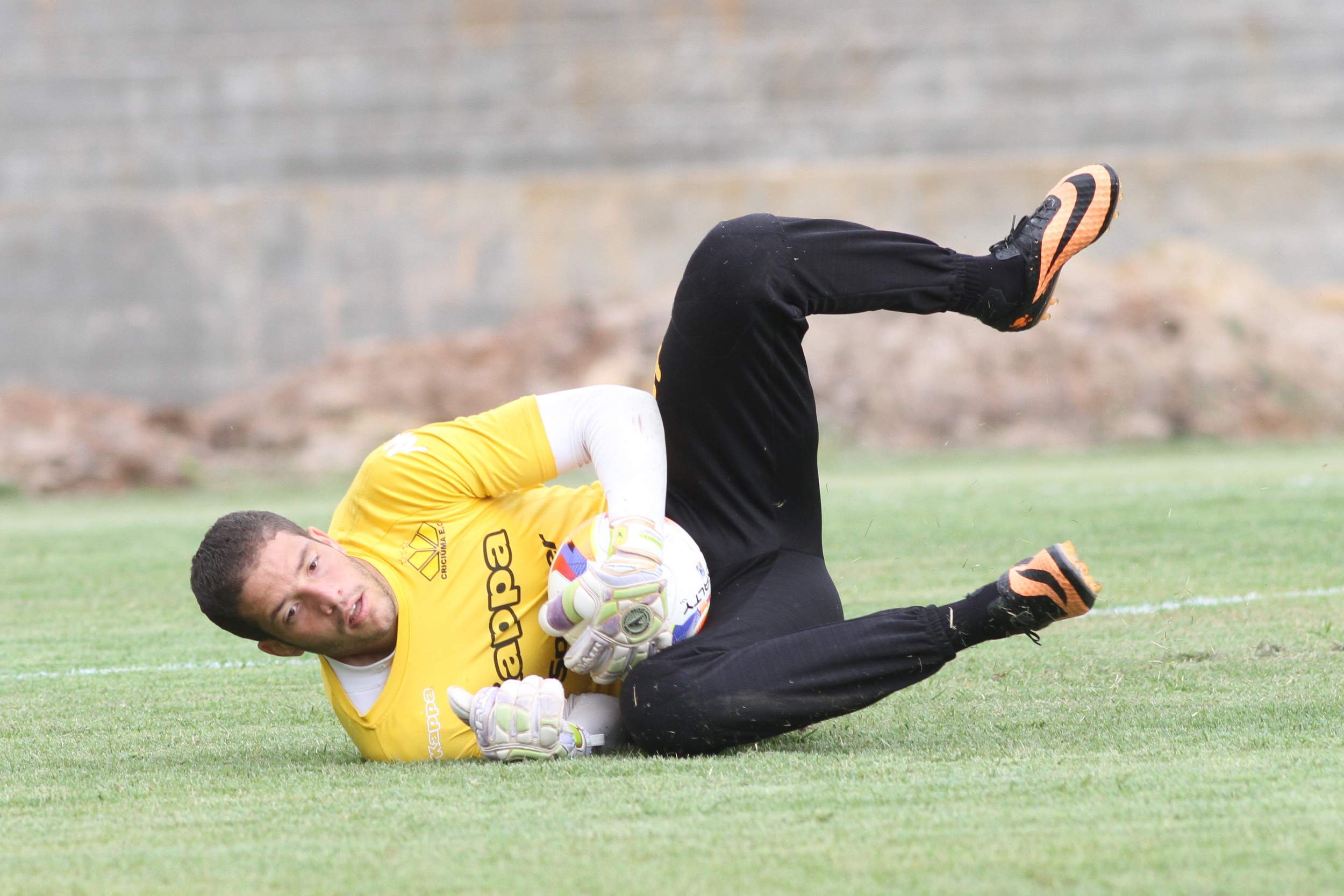 Legenda: Goleiro Edson durante treino do Criciúma na manhã desta quinta-feira (16/04) no Centro de Treinamento no bairro Cristo Redentor