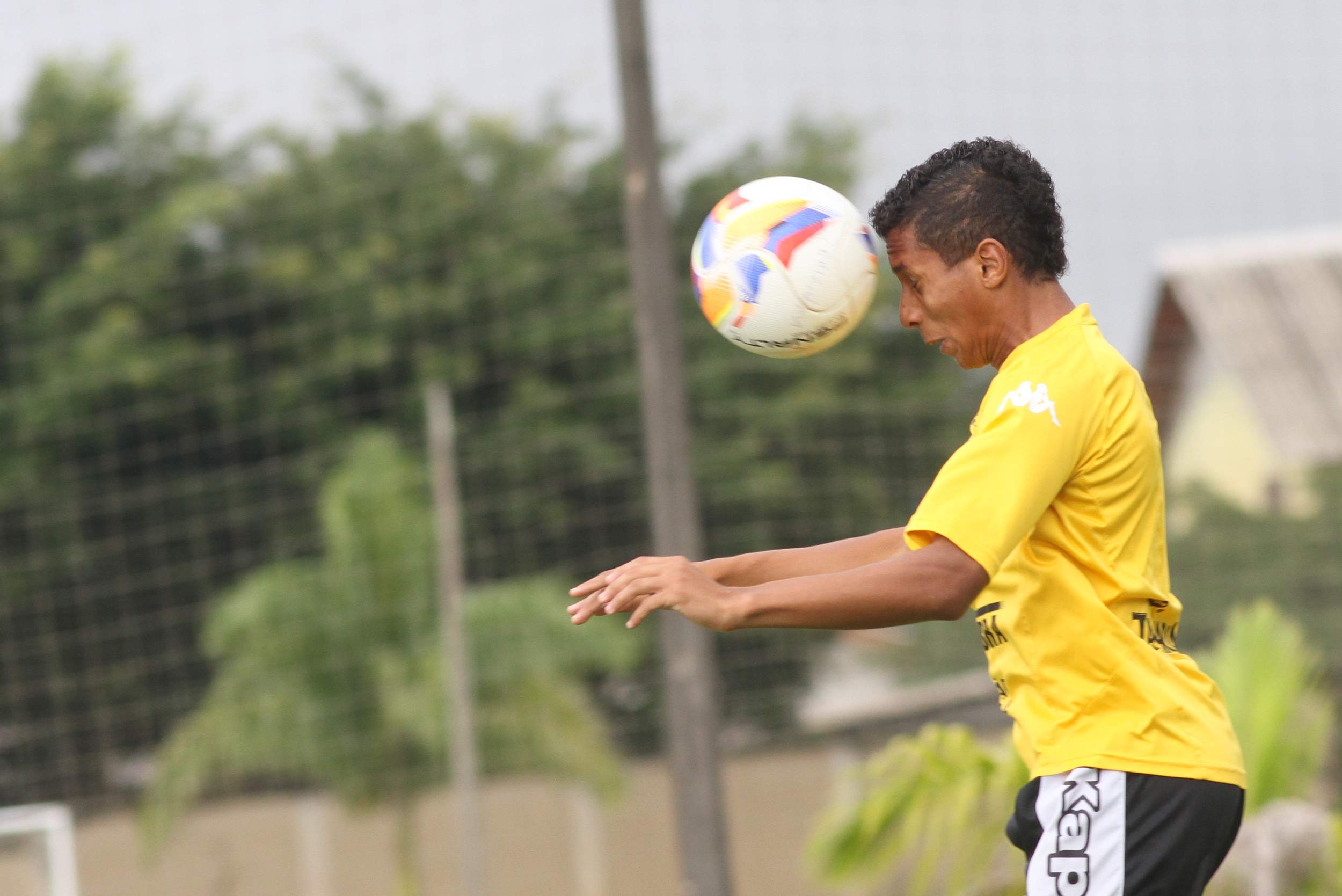 Legenda: Zagueiro Nino durante treino do Criciúma na manhã desta quinta-feira (16/04) no Centro de Treinamento no bairro Cristo Redentor