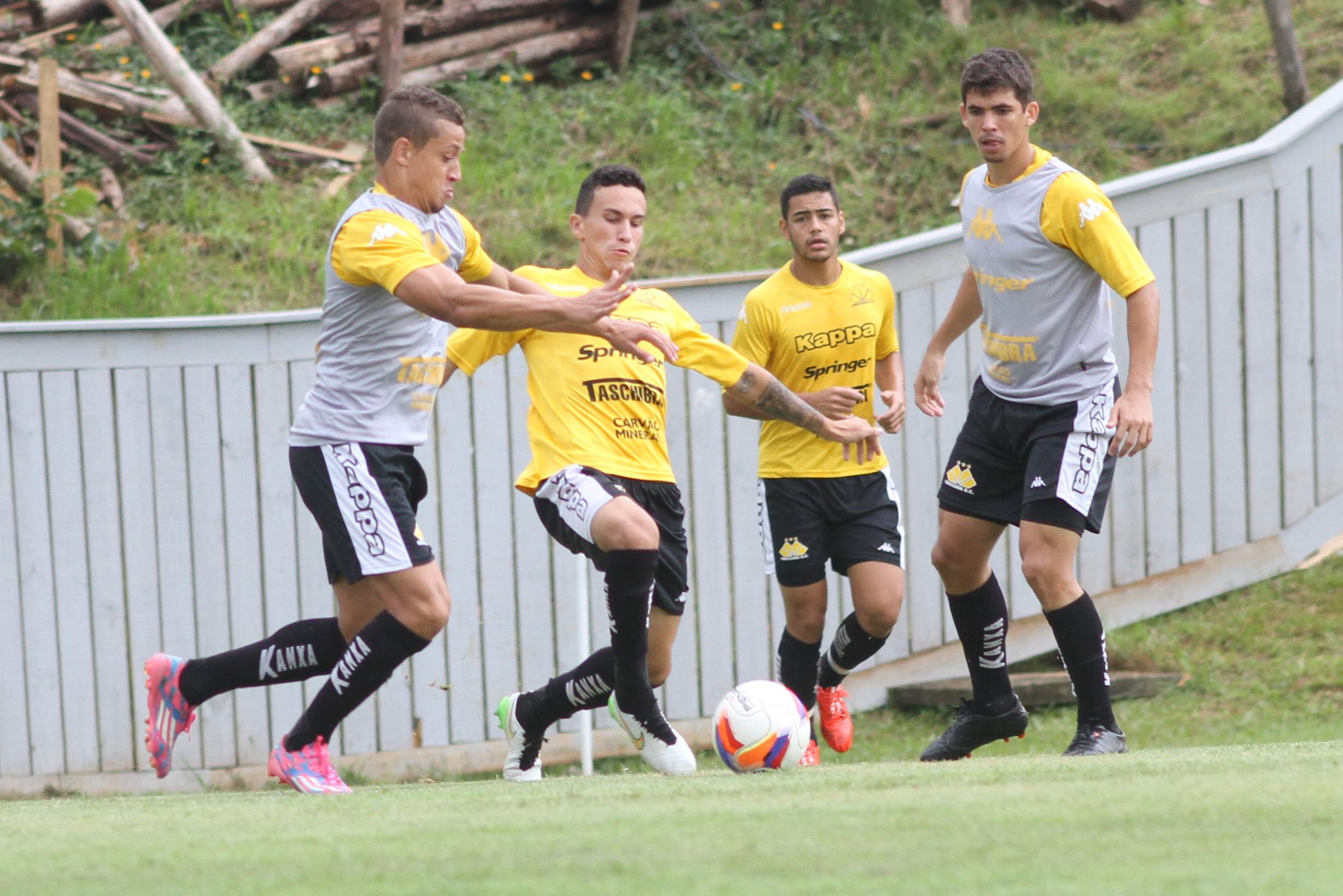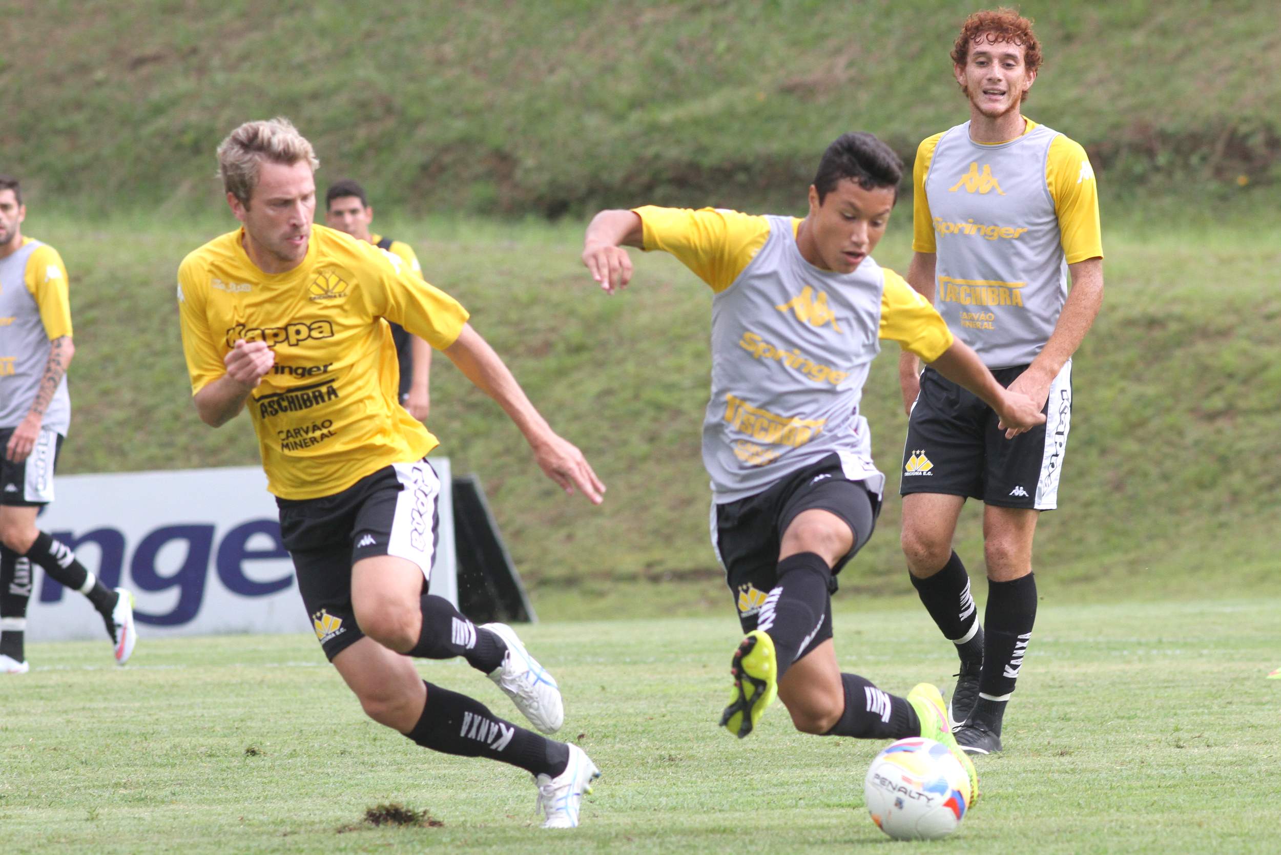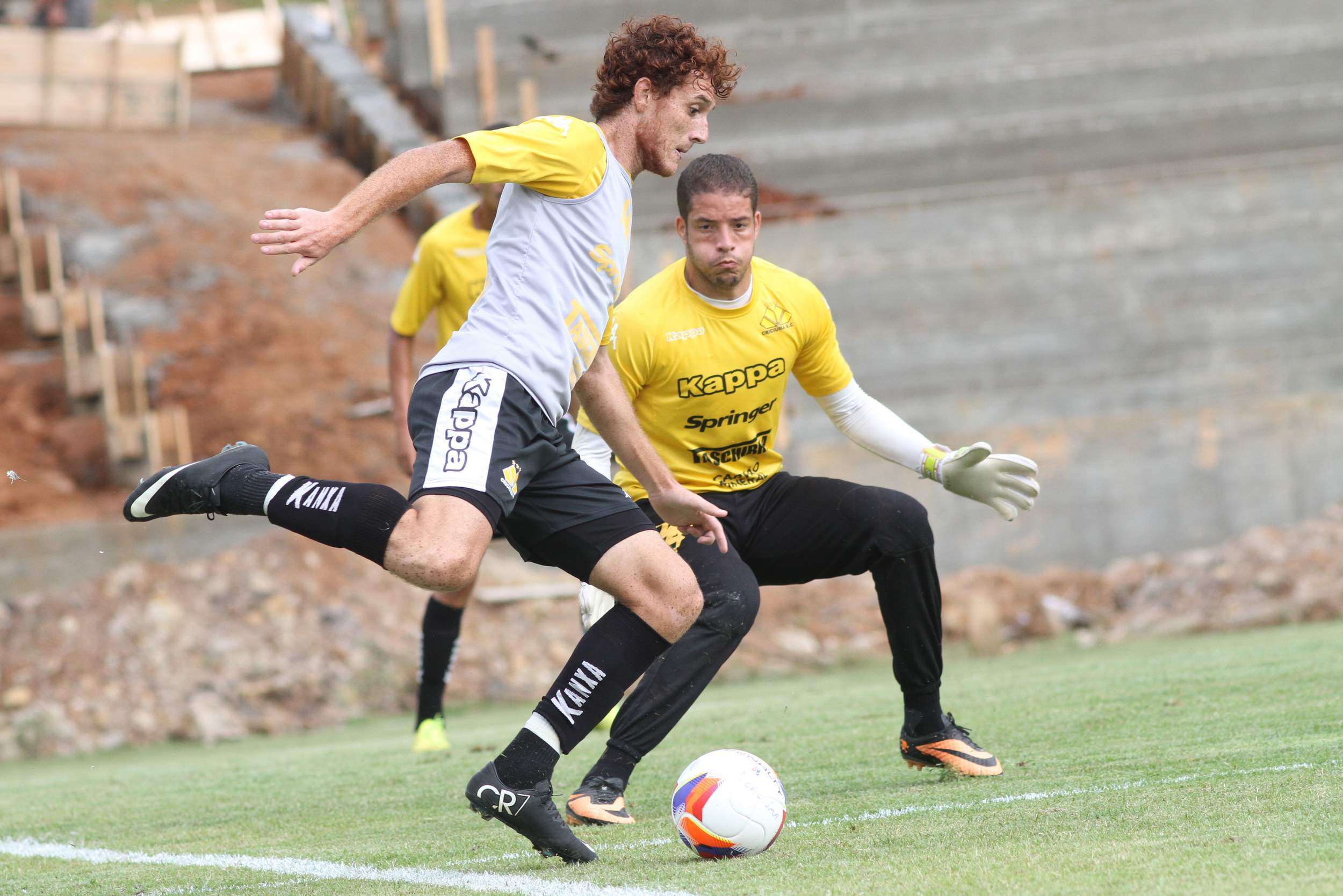 Legenda: Ianson e Edson durante treino do Criciúma na manhã desta quinta-feira (16/04) no Centro de Treinamento no bairro Cristo Redentor