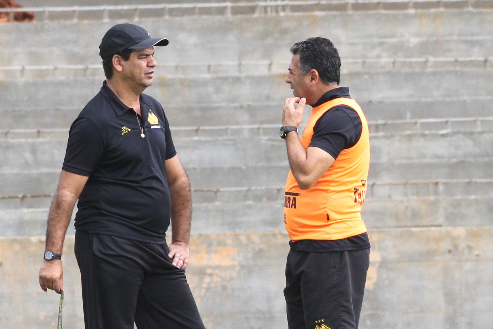 Legenda: Moacir Júnior e Luizinho Vieira durante treino do Criciúma na manhã desta quinta-feira (16/04) no Centro de Treinamento no bairro Cristo Redentor