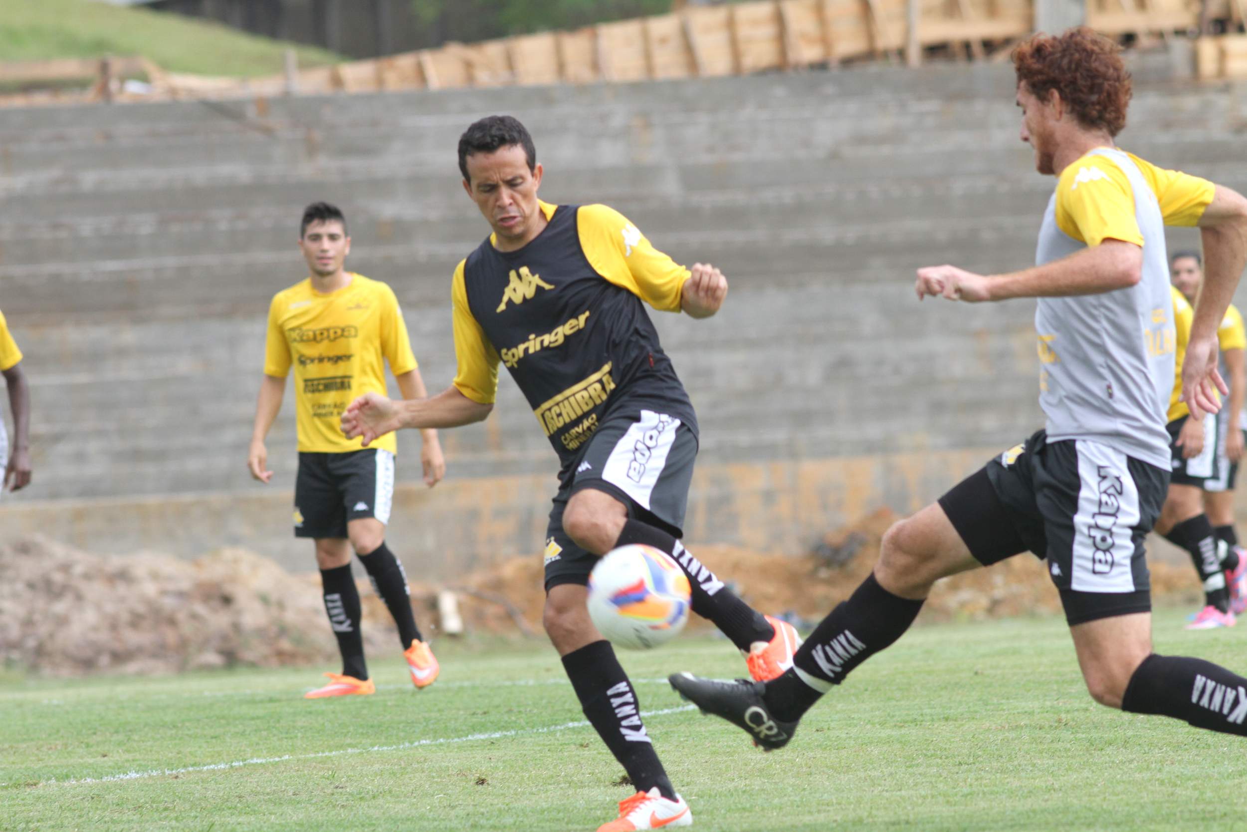 Legenda: Atacante Paulo Sérgio durante treino do Criciúma na manhã desta quinta-feira (16/04) no Centro de Treinamento no bairro Cristo Redentor