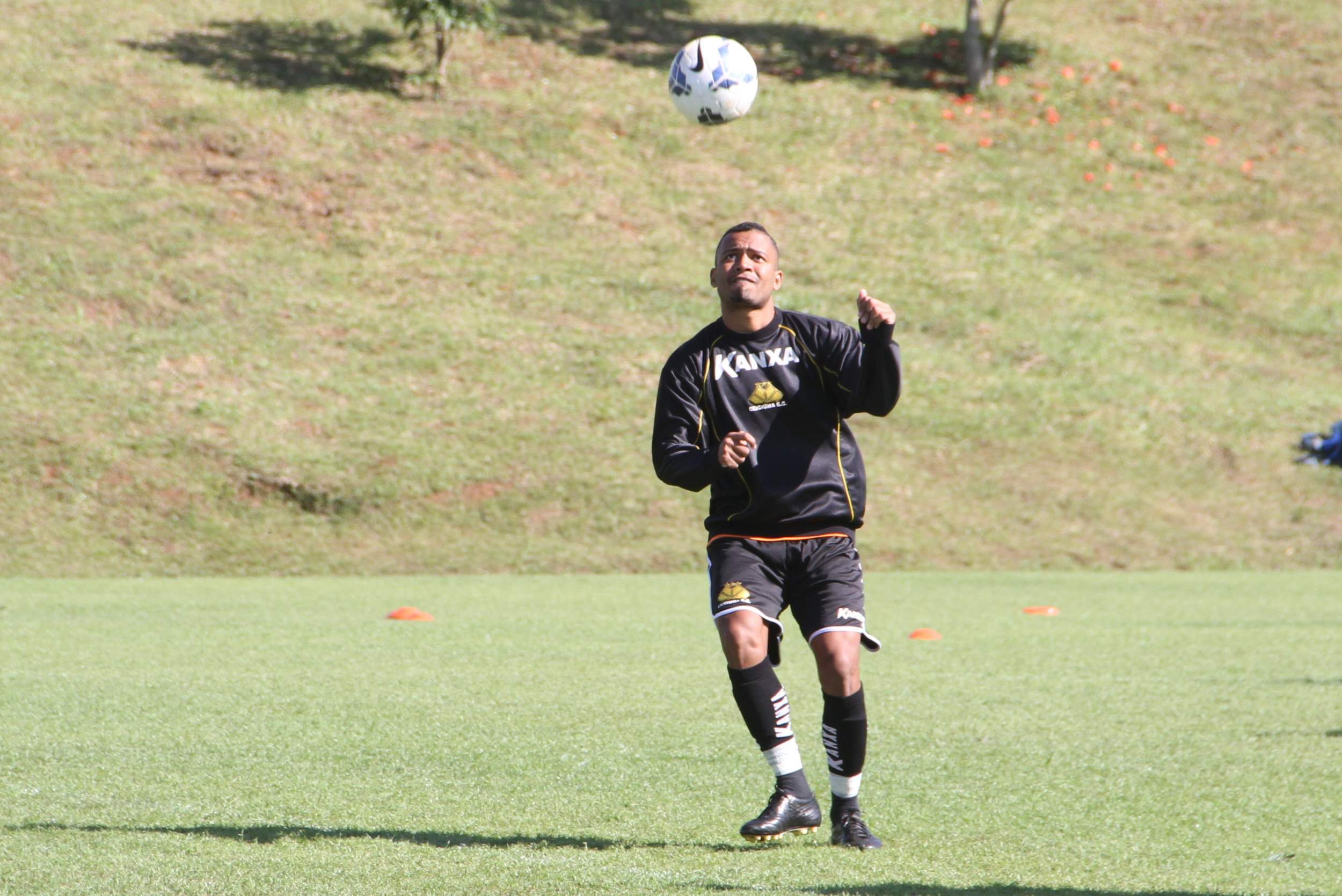 Legenda: Zagueiro Fávio Ferreira durante treino no CT na manhã desta sexta-feira (25/04)
