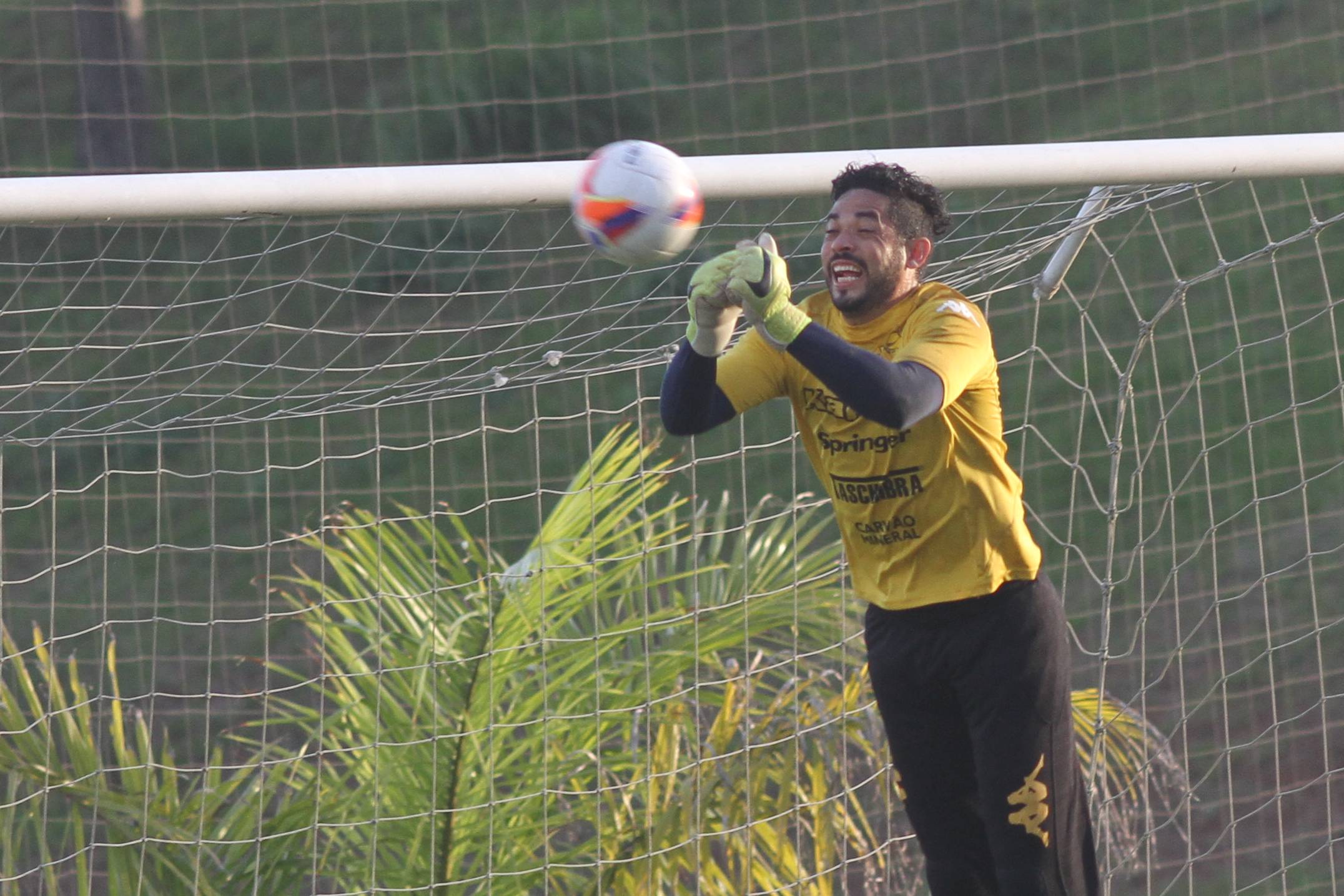 Legenda: Goleiro Luiz durante treino do Criciúma na tarde desta segunda-feira (27/04) no Centro de Treinamento, no bairro Cristo Redentor