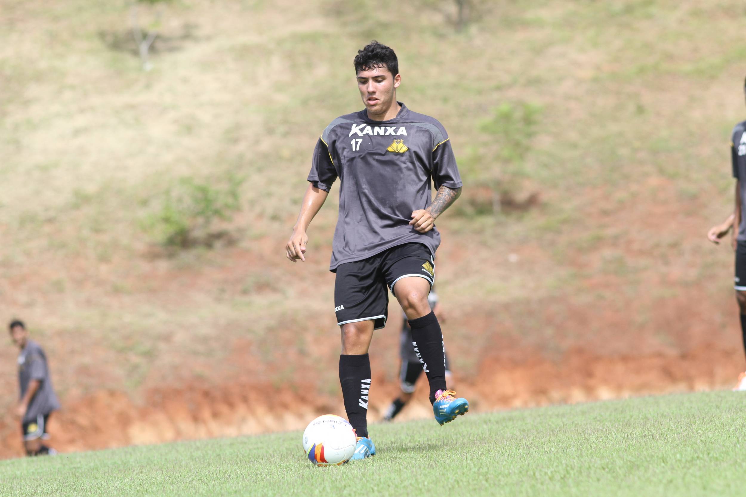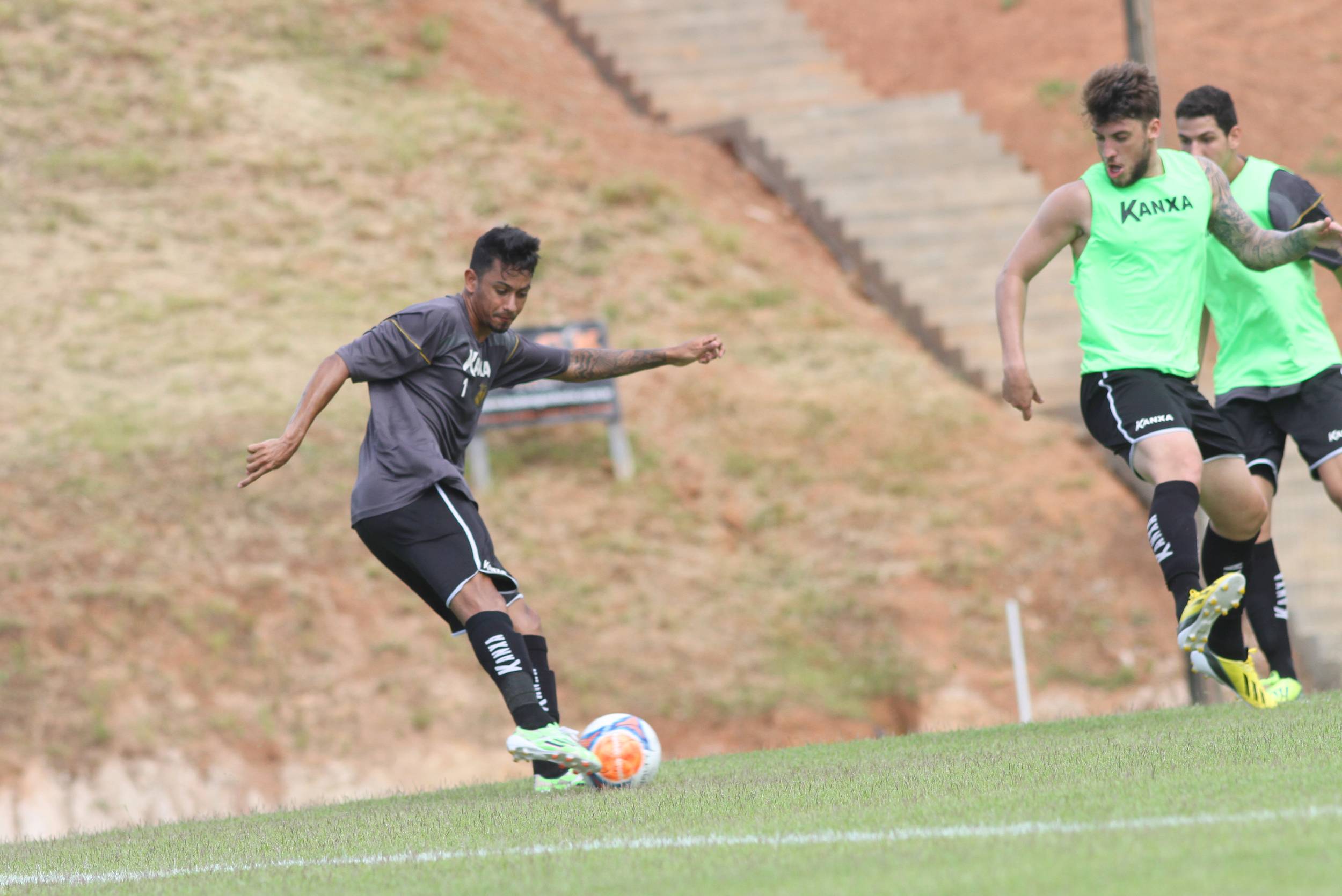 Legenda: Atacante Roger Guedes durante treino do Criciúma na manhã desta quarta-feira (28/01) no Centro de Treinamento, no bairro Cristo Redentor
