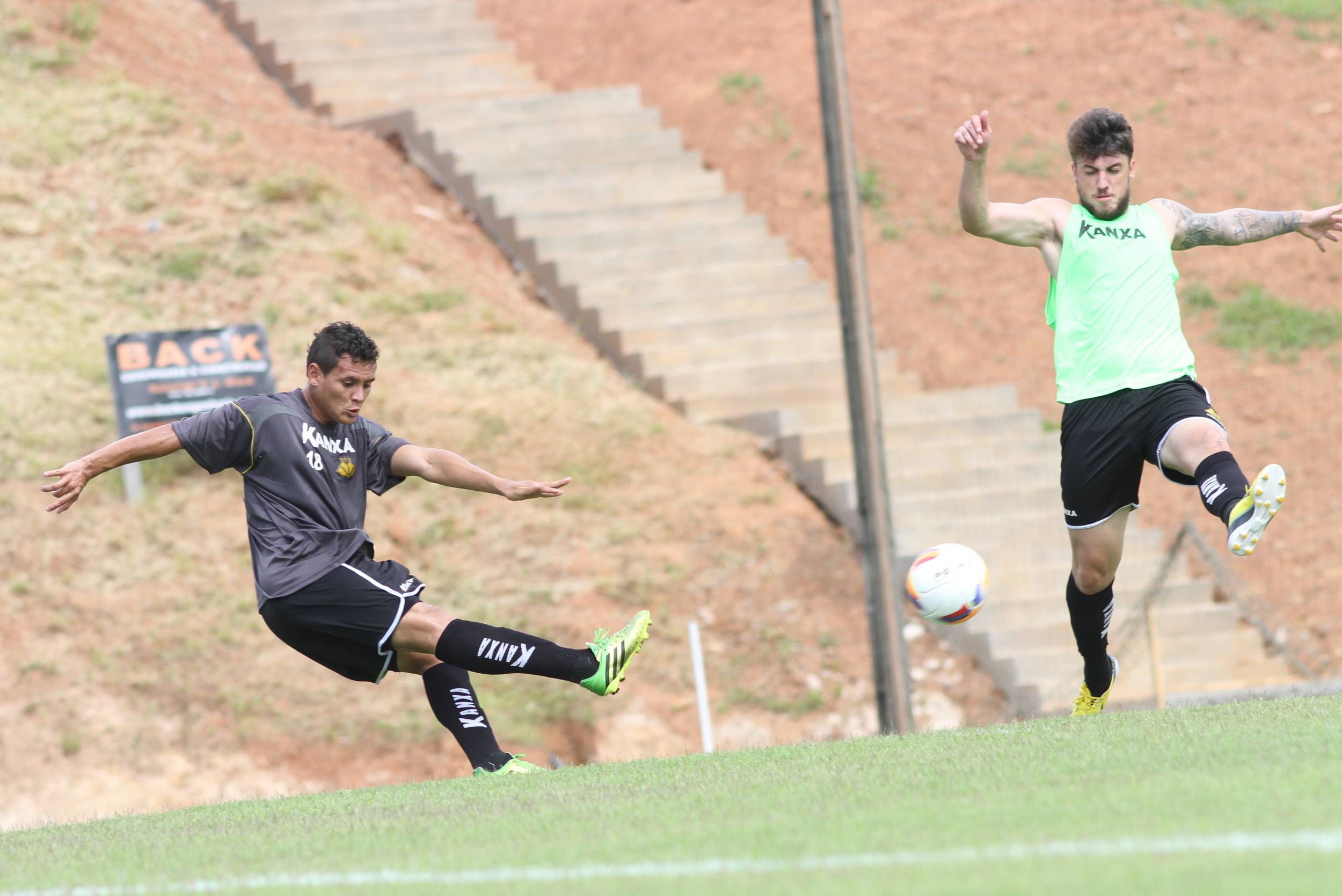 Legenda: Gabriel e Heitor durante treino do Criciúma na manhã desta quarta-feira (28/01) no Centro de Treinamento, no bairro Cristo Redentor