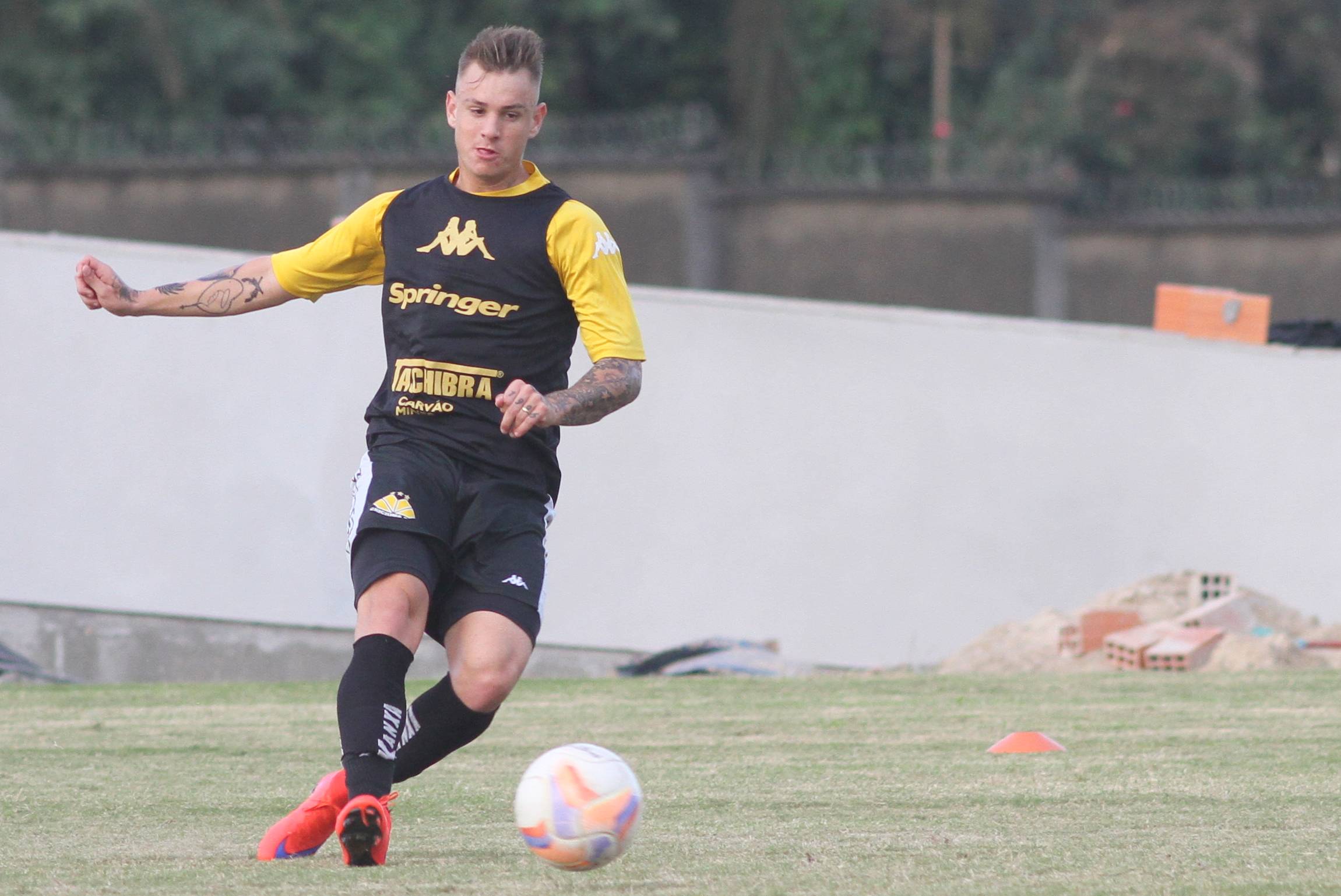 Legenda: Róger Guedes durante treino do Criciúma na tarde desta segunda-feira (29/06) no Centro de Treinamento, no bairro Cristo Redentor