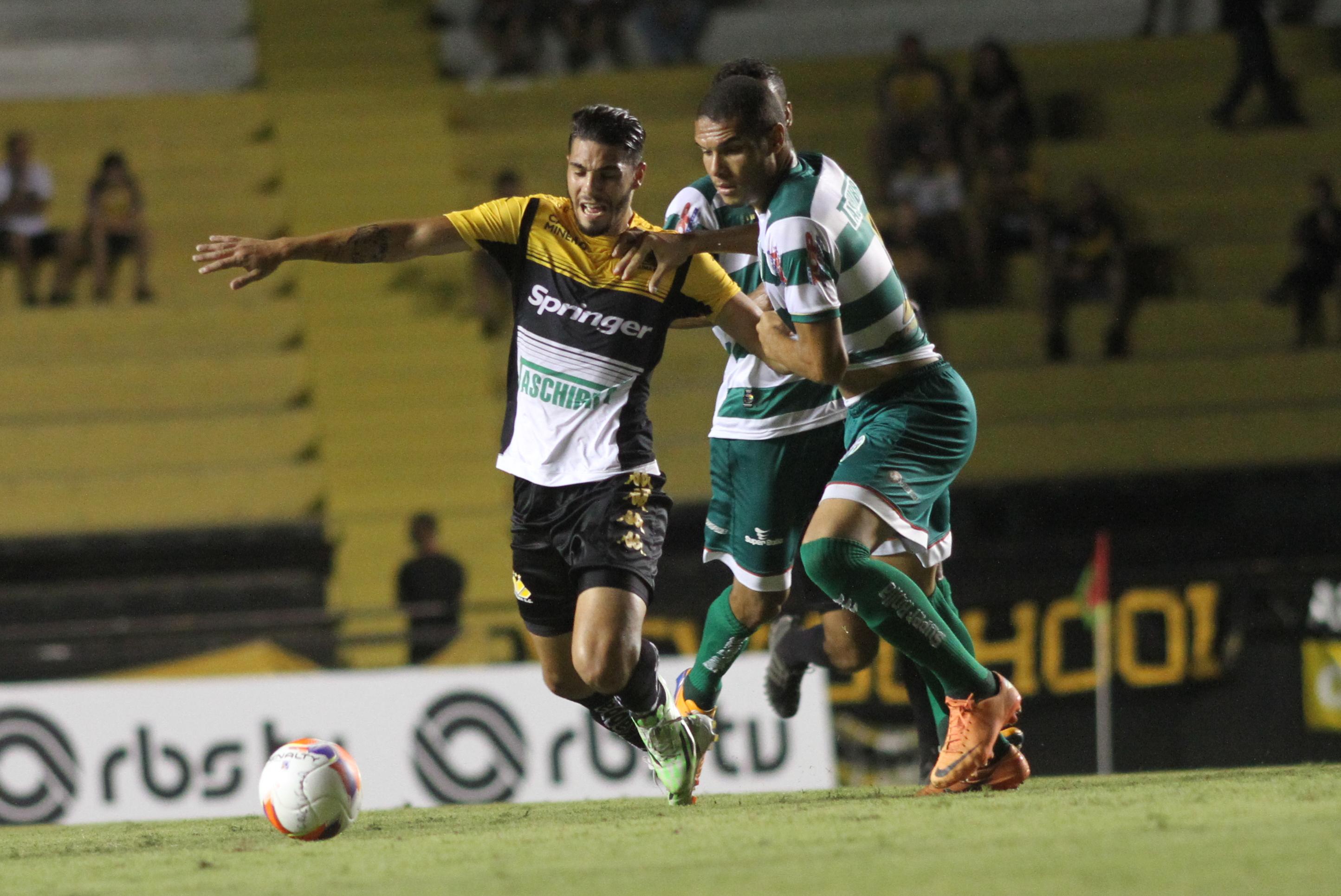 Legenda: Volante Luizinho Mello durante o jogo deste domingo (12/04) diante do Metropolitano.