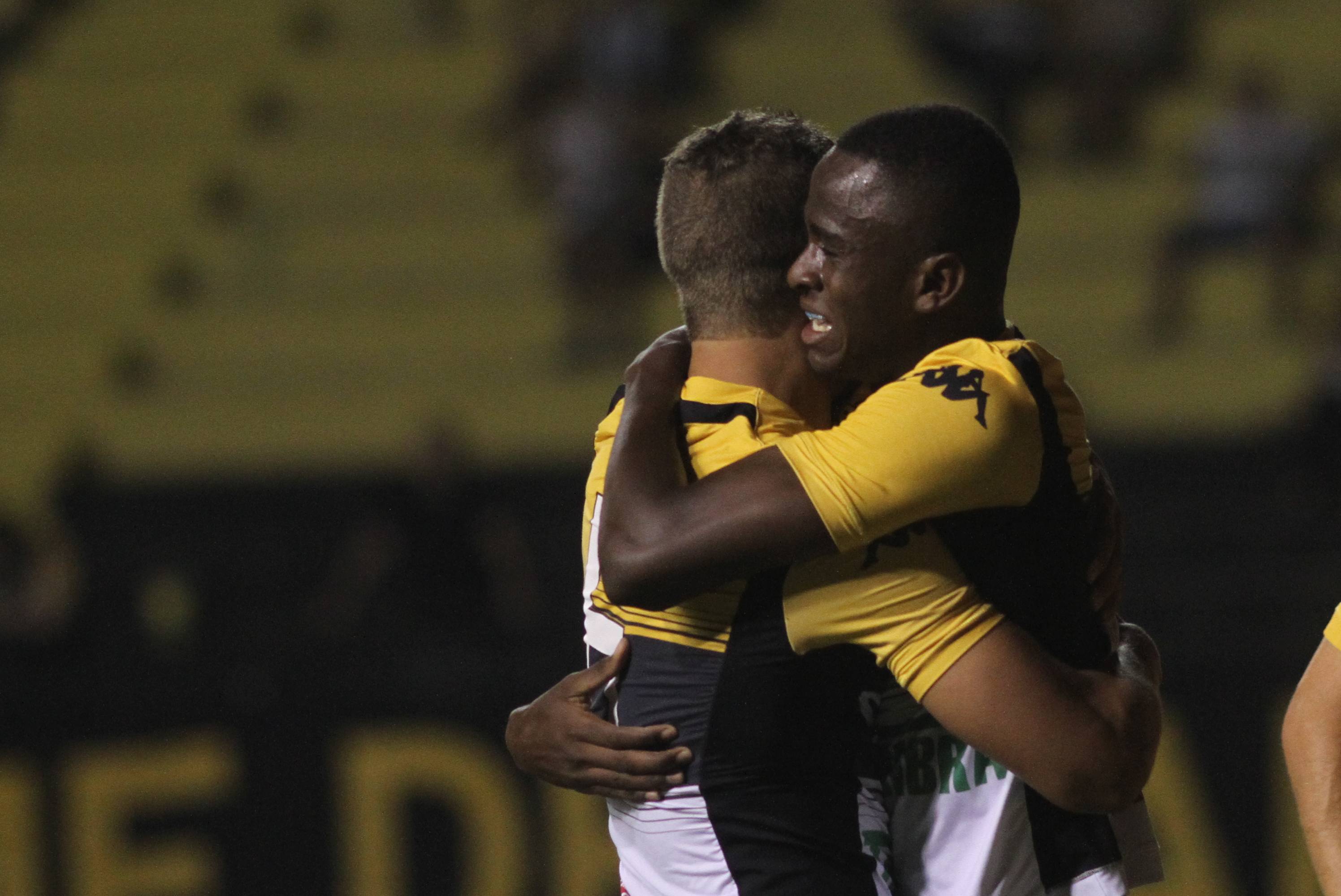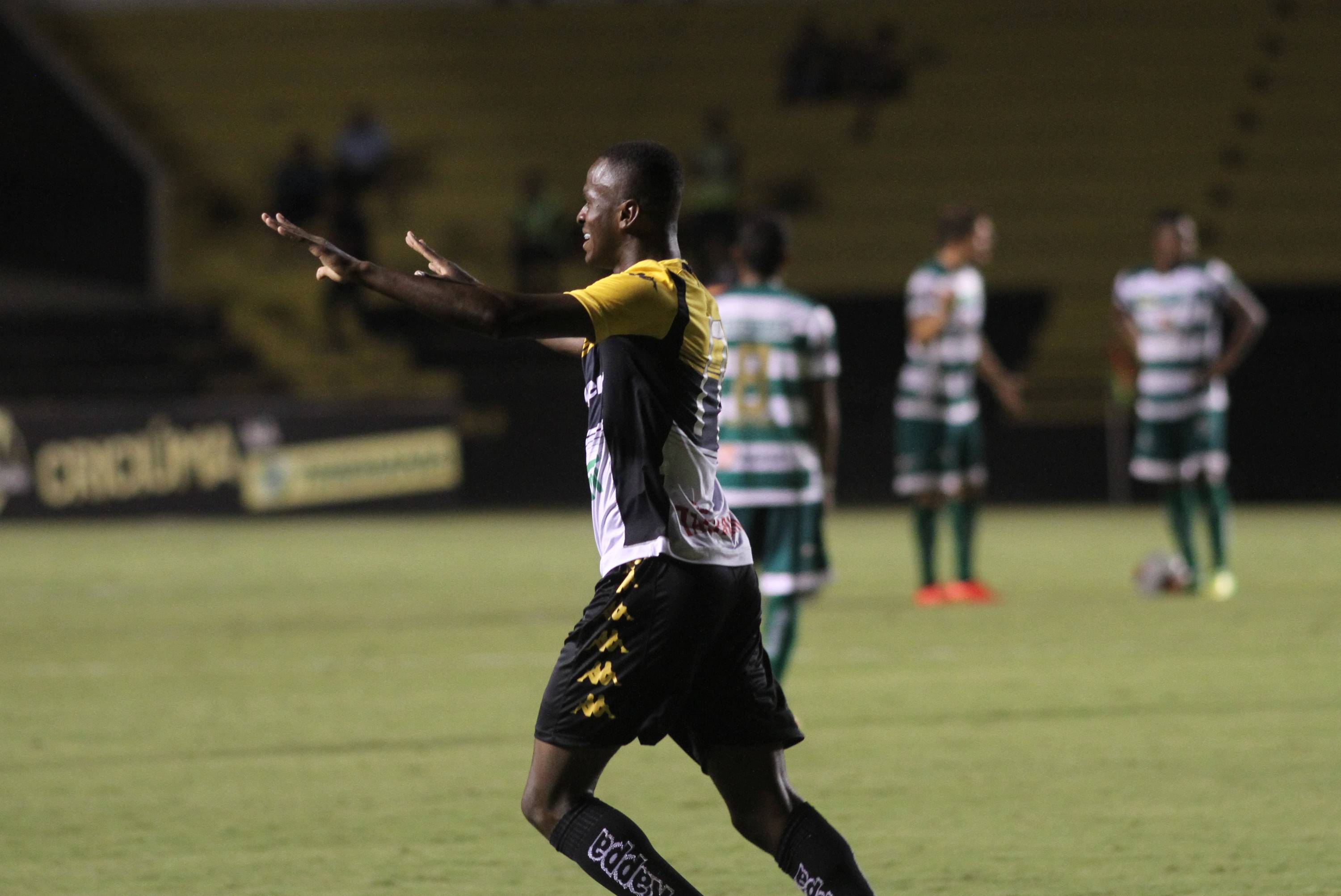 Legenda: Atacante Jefferson comemora o gol durante o jogo deste domingo (12/04) diante do Metropolitano.