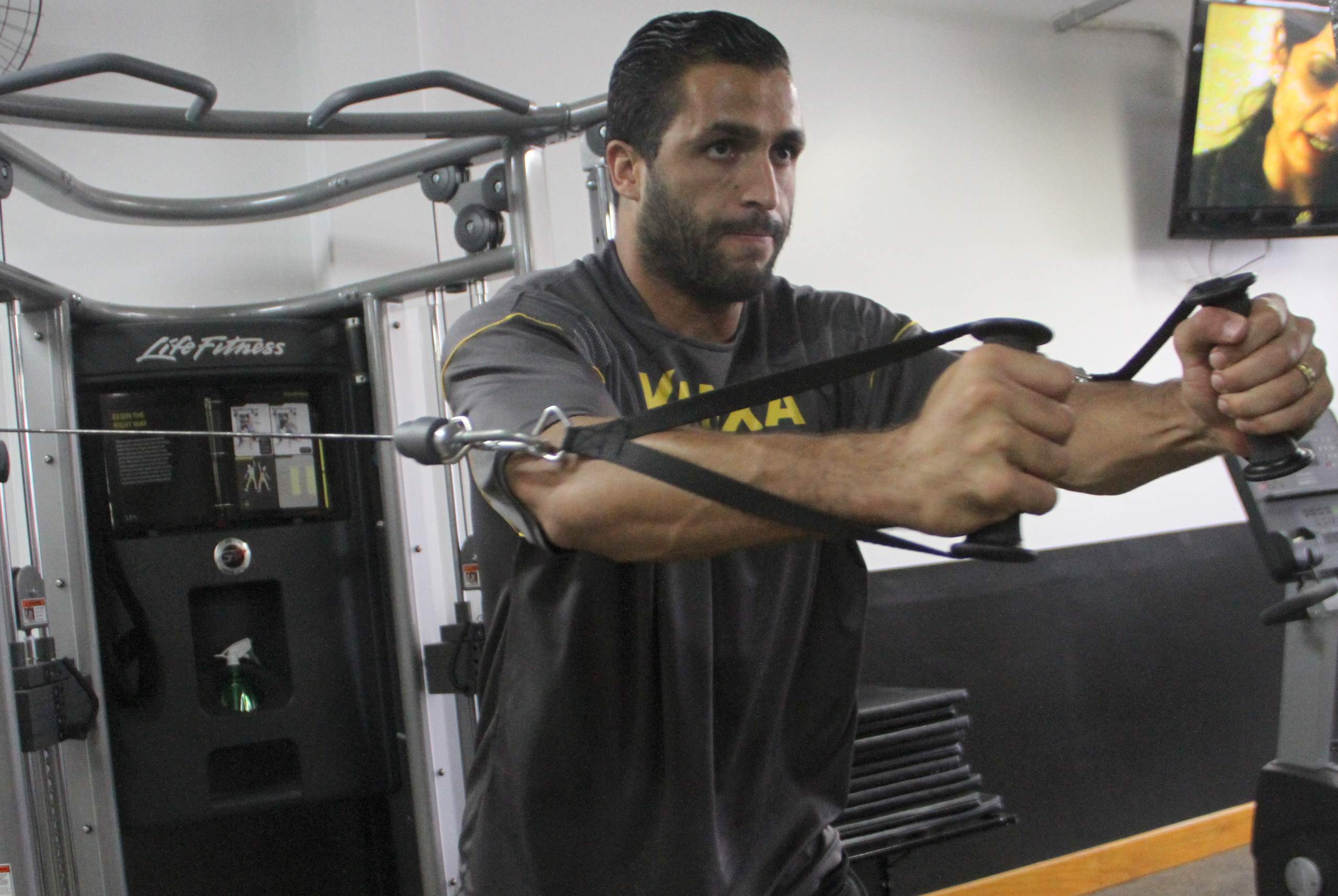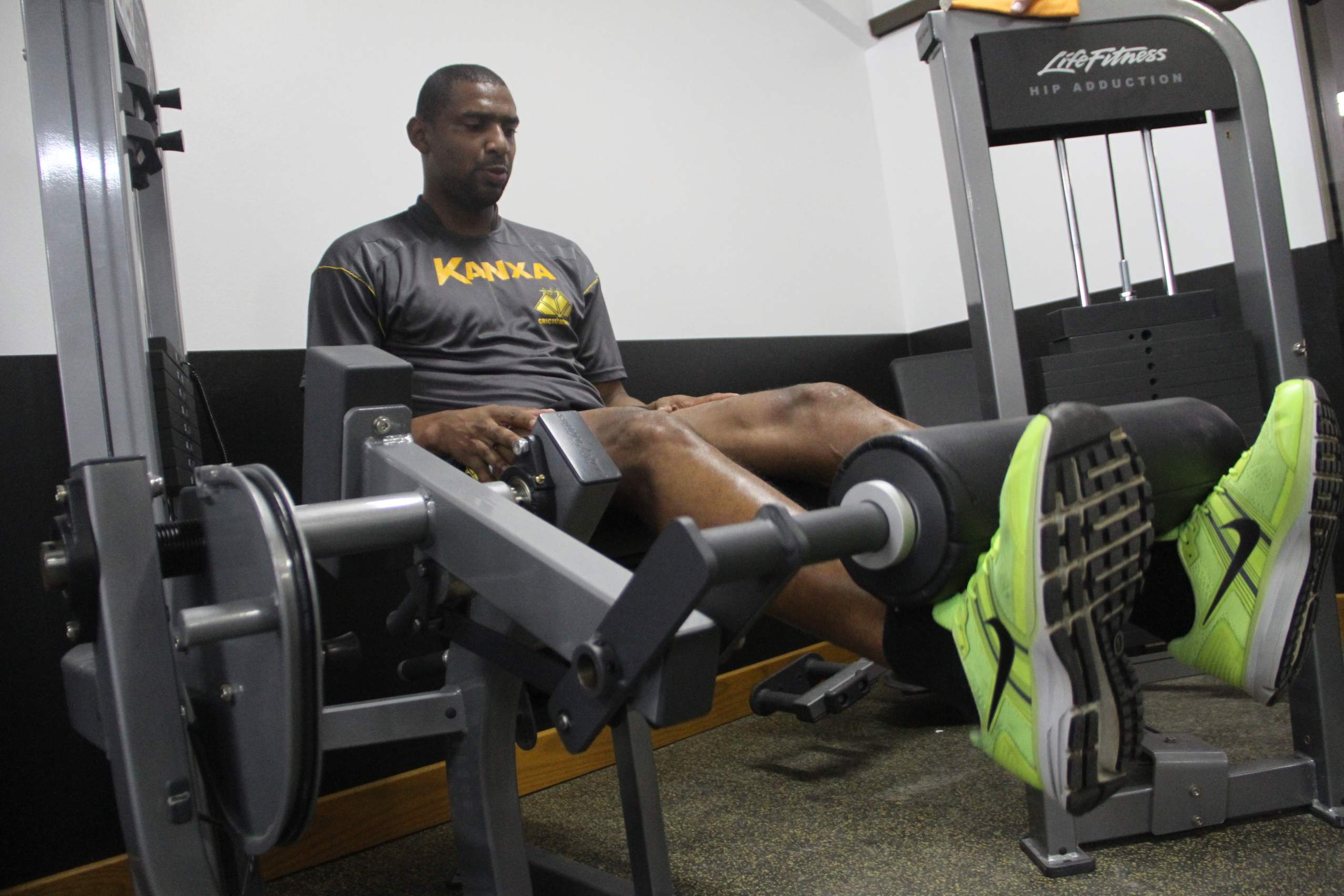 Legenda: Goleiro Bruno durante treino na academia do estádio Heriberto Hülse na tarde desta quinta-feira (18/09)