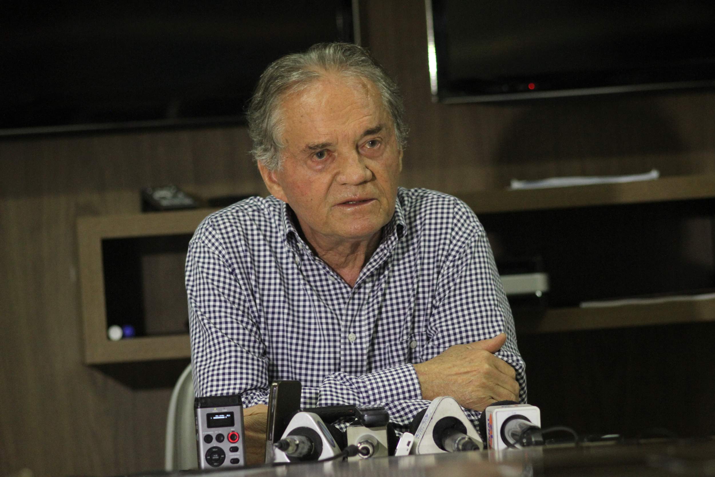 Legenda: Entrevista coletiva com o presidente Antenor Angeloni na tarde desta quarta-feira (14/05) na sede administrativa do Grupo Angeloni