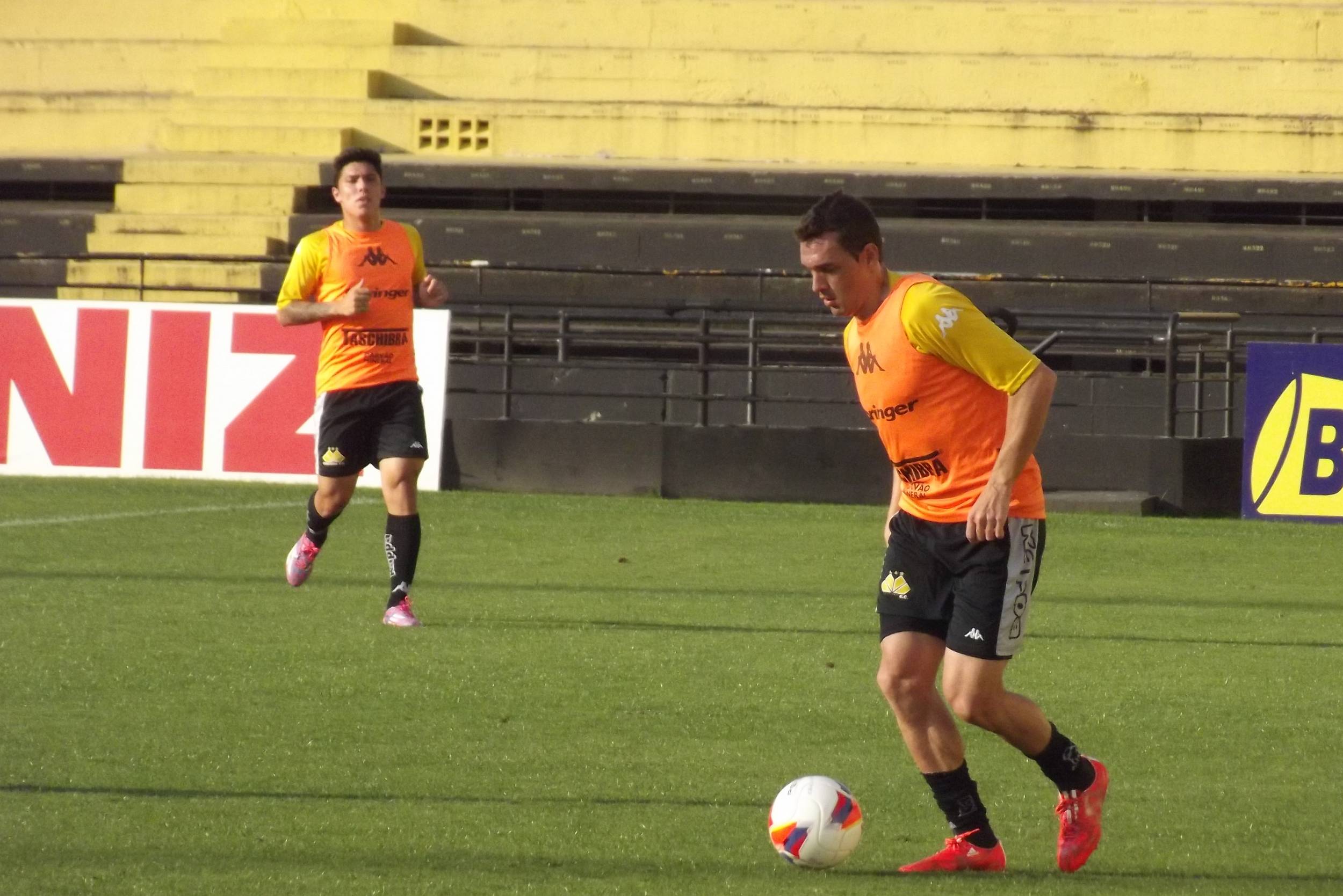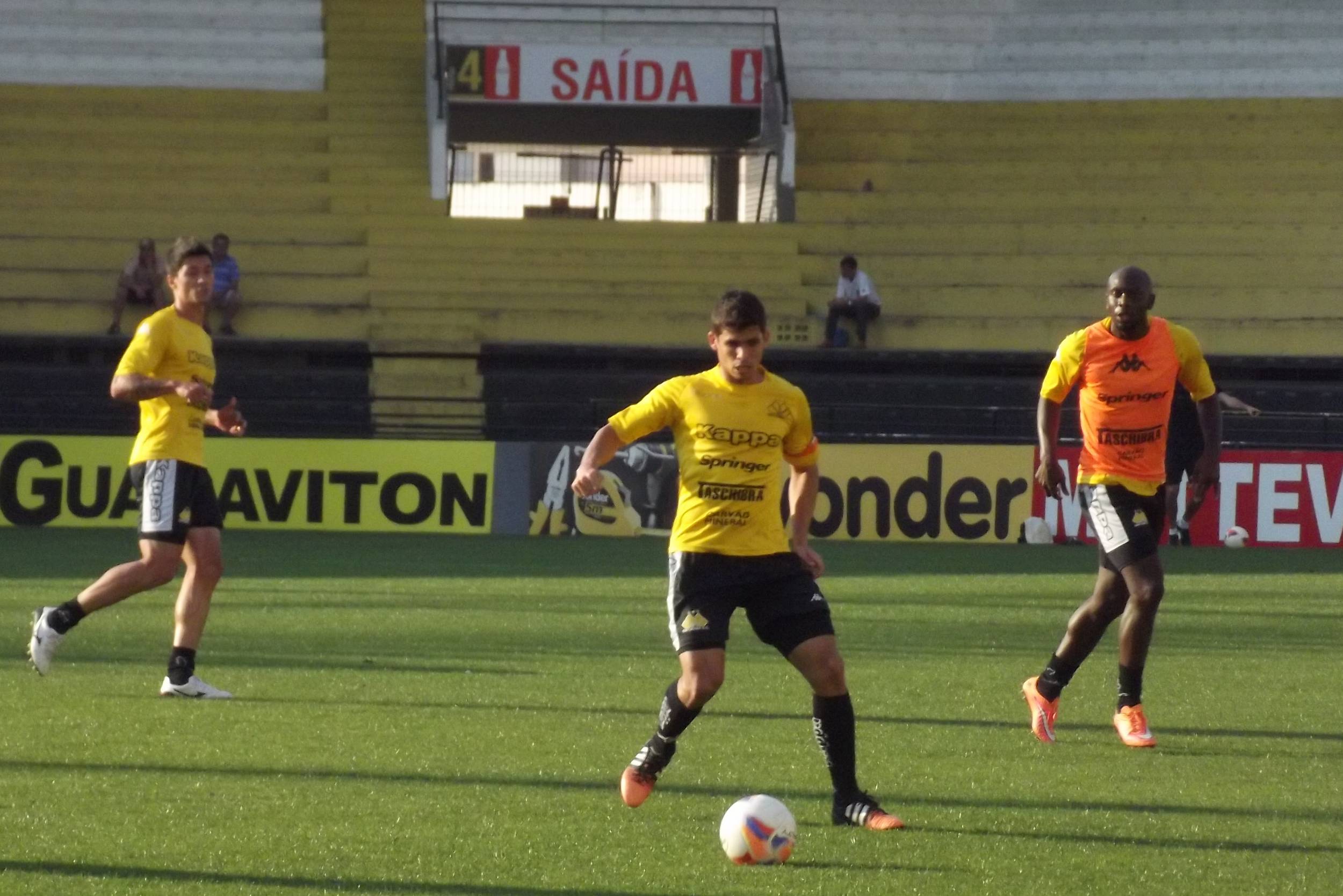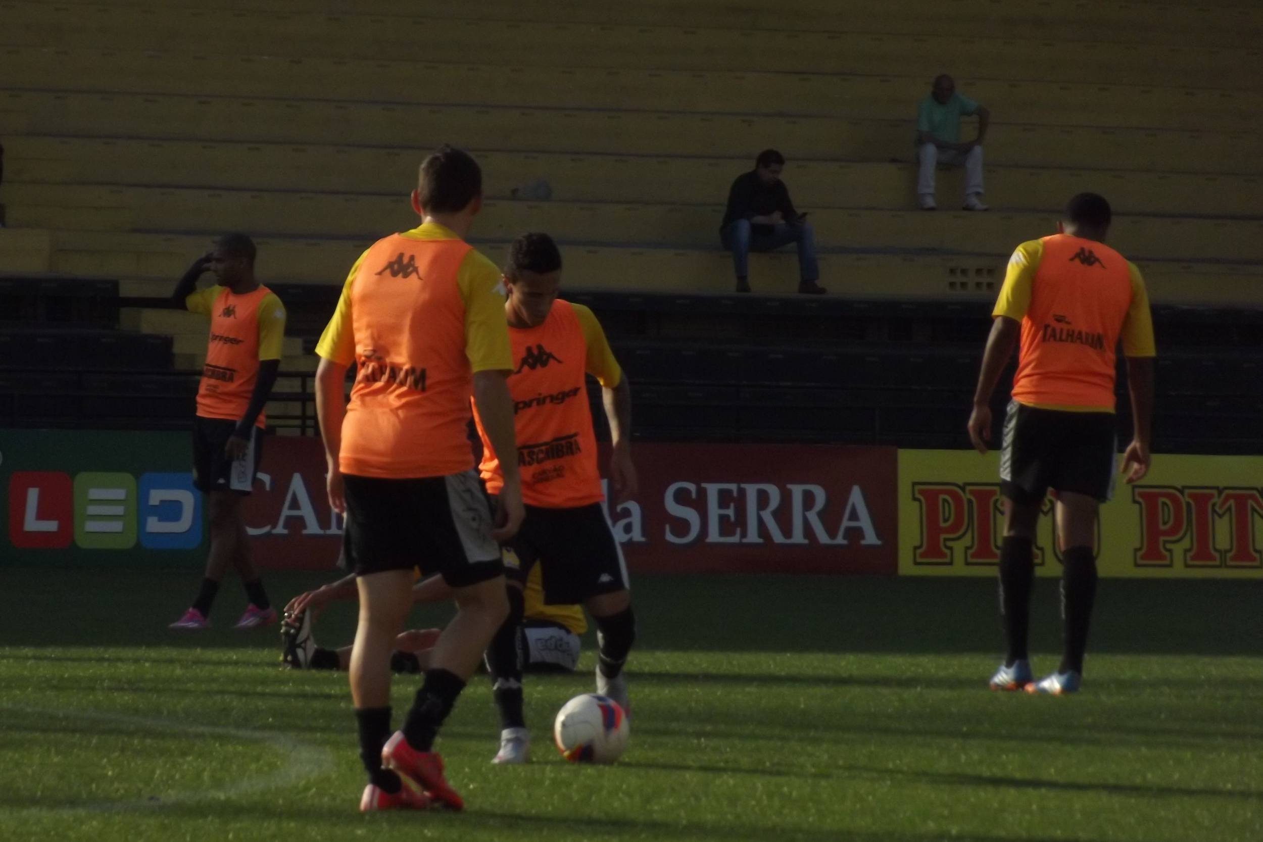 Legenda: Atletas durante o treino desta segunda-feira (31/08), no estádio Heriberto Hülse.