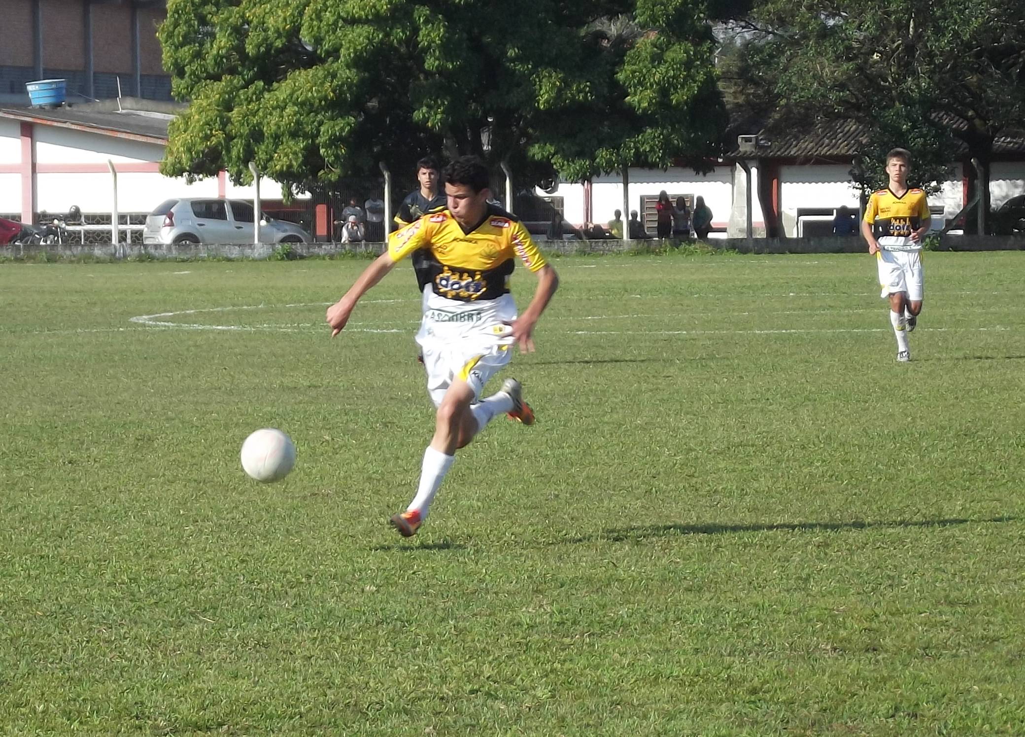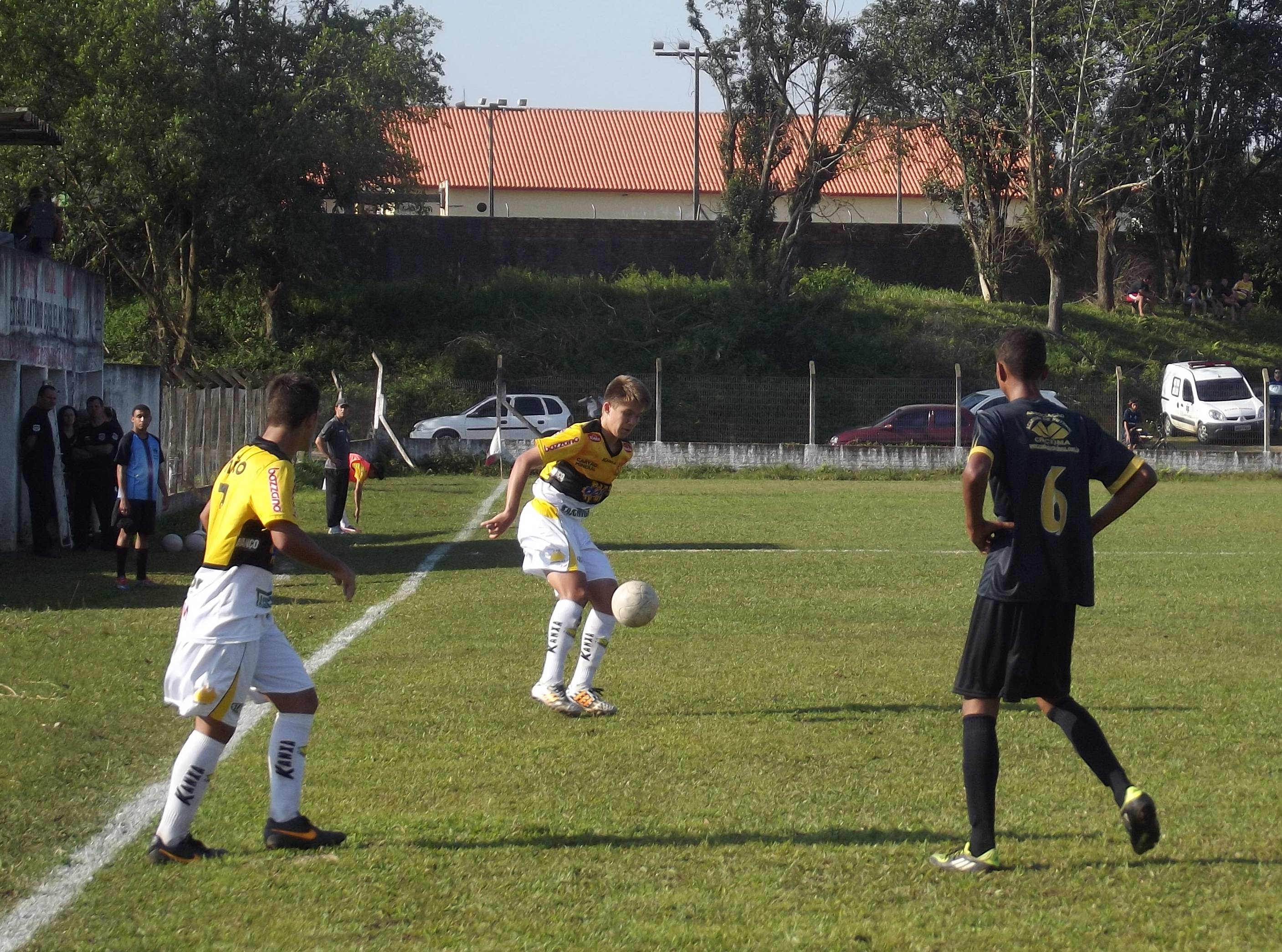 Legenda: Lateral Matheus durante o jogo desta terça-feira (19/08) contra o Academia de Futebol.