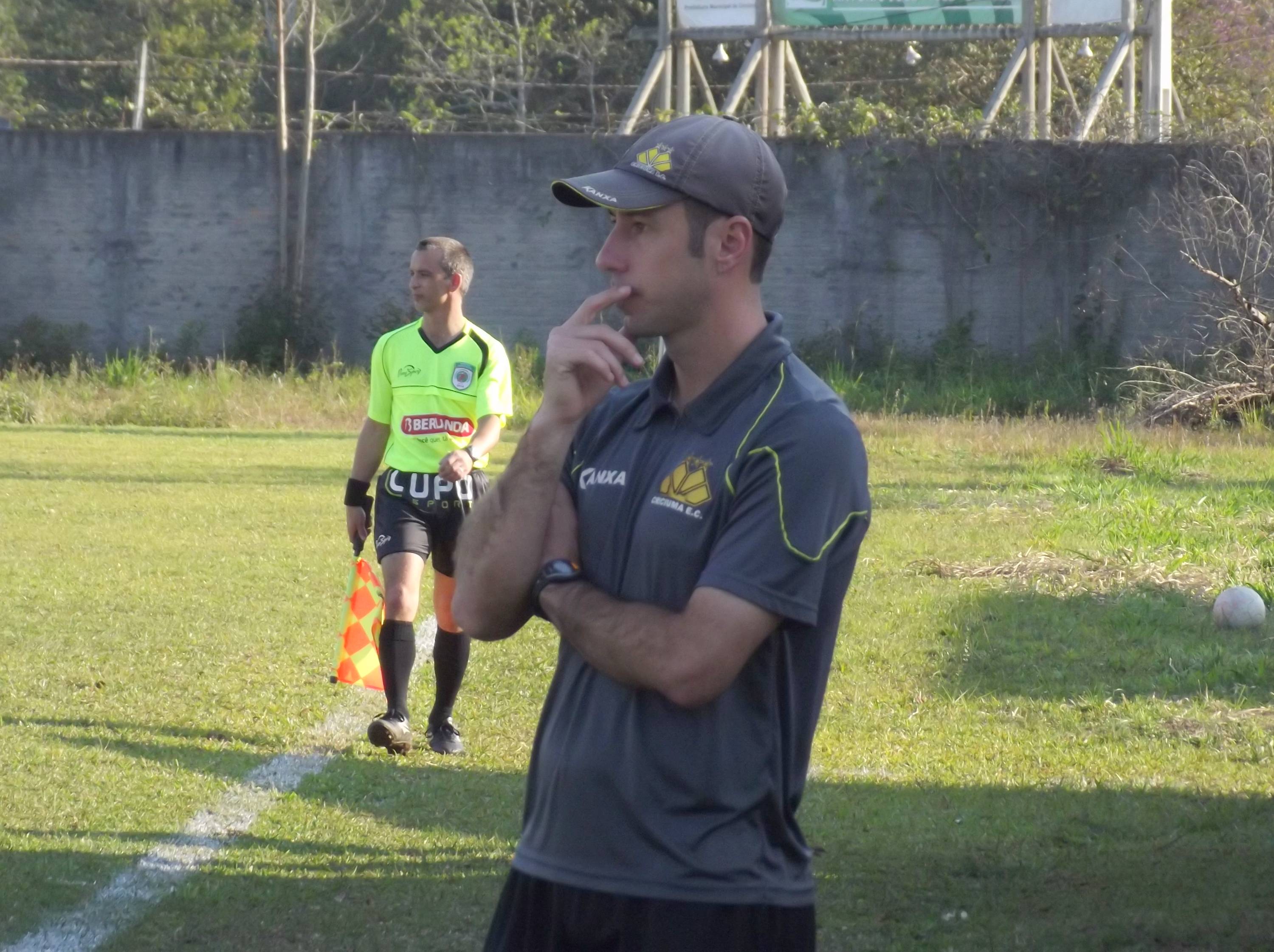 Legenda: Técnico Halisson Feutrin durante o jogo desta terça-feira (19/08) contra o Academia de Futebol.