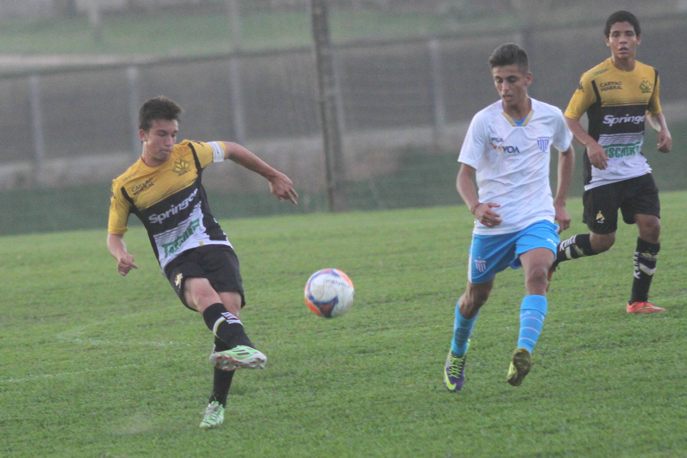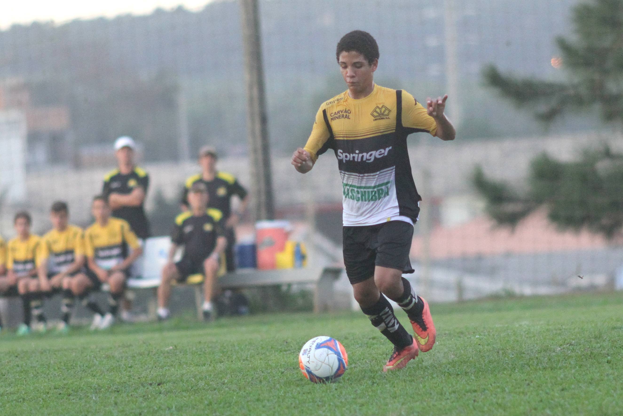 Legenda: Zagueiro Mike durante o jogo amistoso da categoria Sub-15 entre Criciúma e Avaí, na tarde desta quarta-feira (10/06), no Centro de Treinamento, no bairro Cristo Redentor
