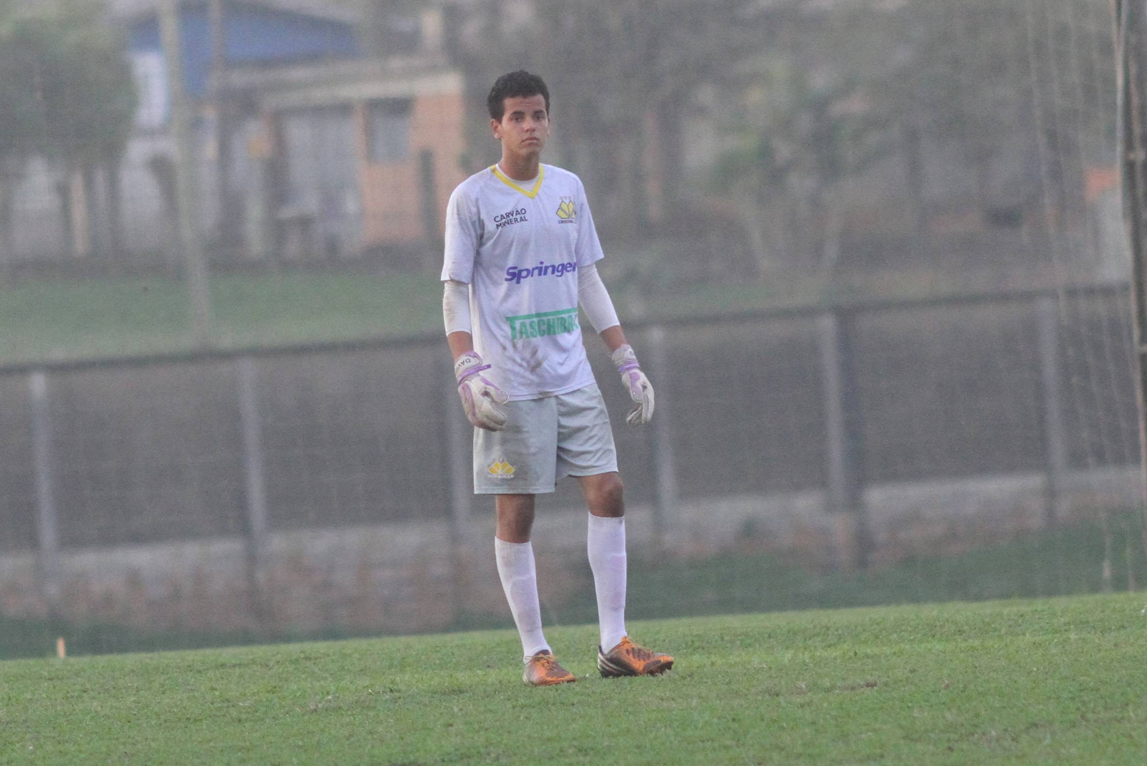 Legenda: Goleiro Diego durante o jogo amistoso da categoria Sub-15 entre Criciúma e Avaí, na tarde desta quarta-feira (10/06), no Centro de Treinamento, no bairro Cristo Redentor