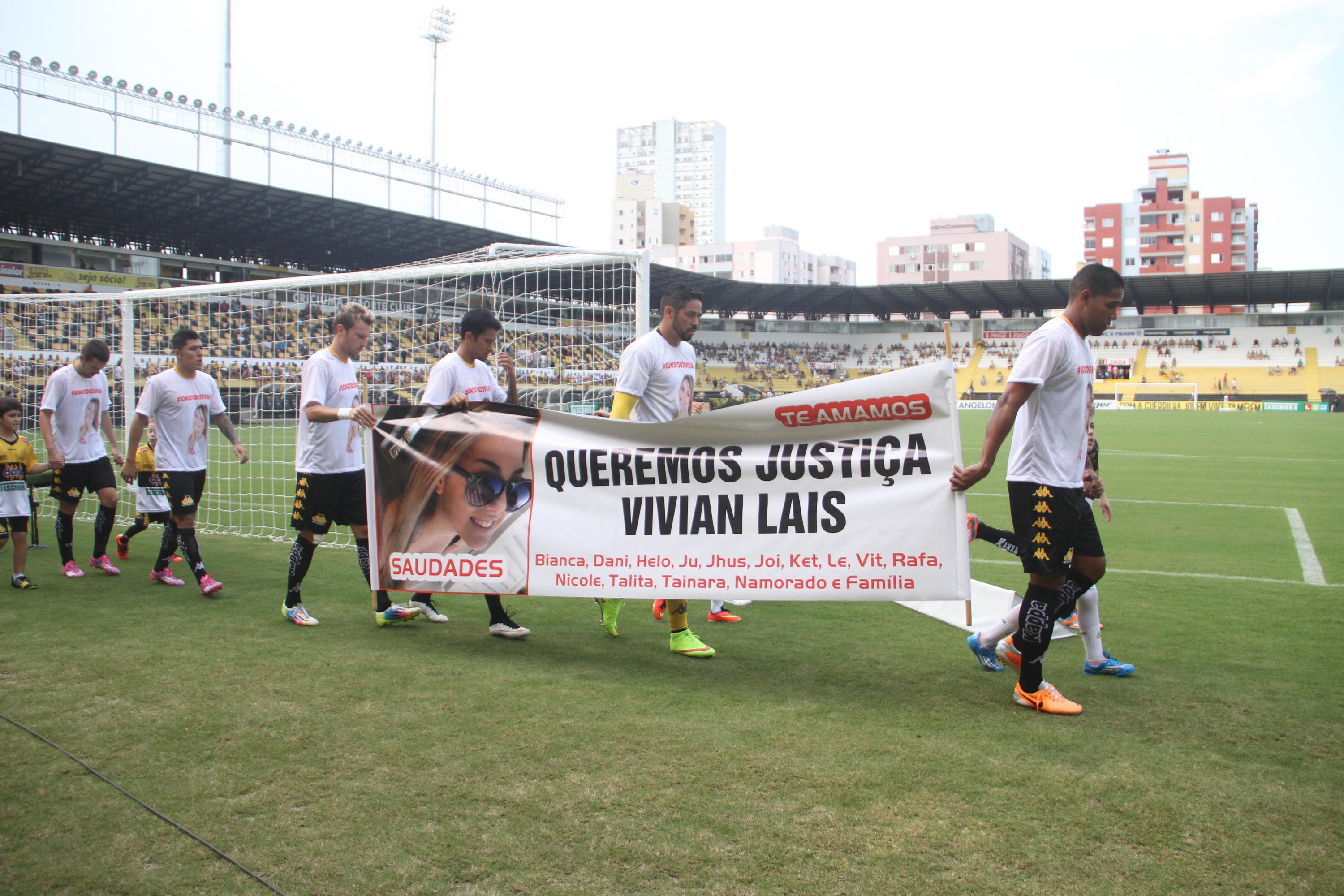 O Criciúma homenageou neste sábado (14/03) a jovem Vivian Lais Philipi, 17 anos, que foi brutalmente assassinada no município de Içara. Na entrada em campo para o duelo contra o Inter de Lages, no estádio Heriberto Hülse, os atletas carvoeiros entraram vestindo e segurando uma faixa, que pede justiça no caso. O crime ainda não foi solucionado.