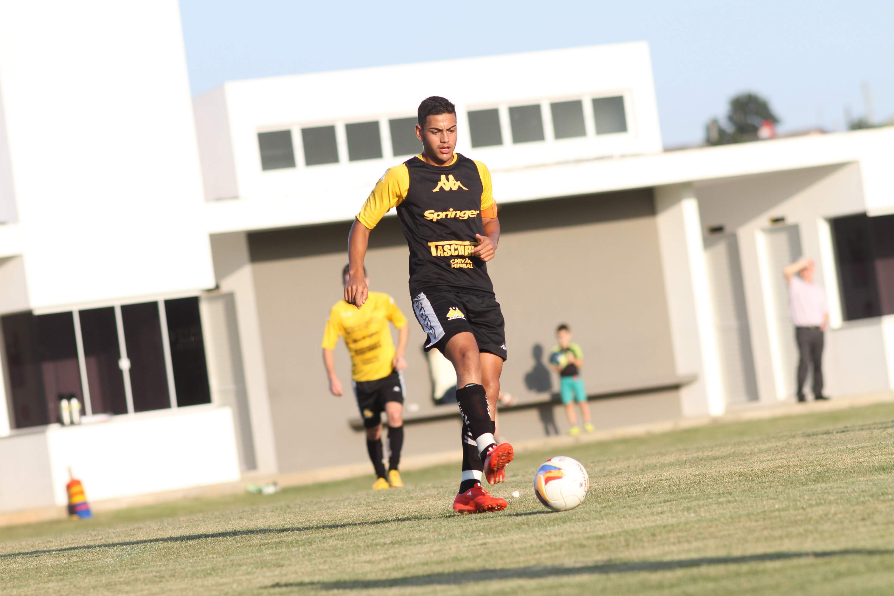 Legenda: Douglas Moreira durante treino do Criciúma na tarde desta quinta-feira (02/04), no Centro de Treinamento, no bairro Cristo Redentor