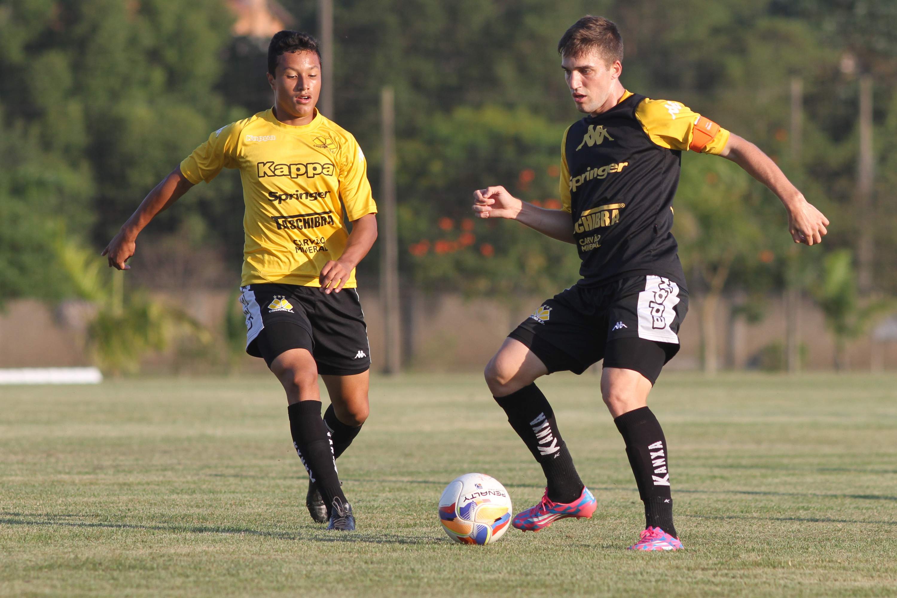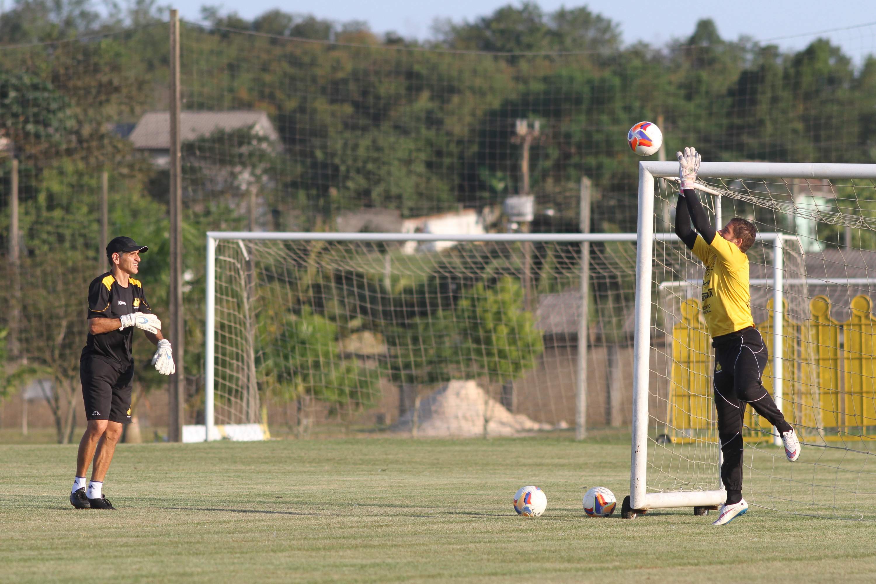 Legenda: Mauricio Dacoregio e Edson durante treino do Criciúma na tarde desta quinta-feira (02/04), no Centro de Treinamento, no bairro Cristo Redentor