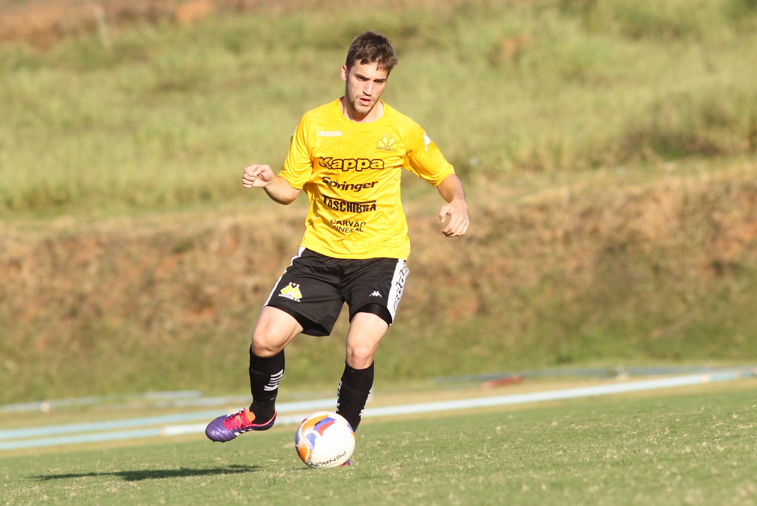 Legenda: Vitor Michels durante treino do Criciúma na tarde deste sábado (02/05) no Centro de Treinamento do Atlético Sorocaba (SP)