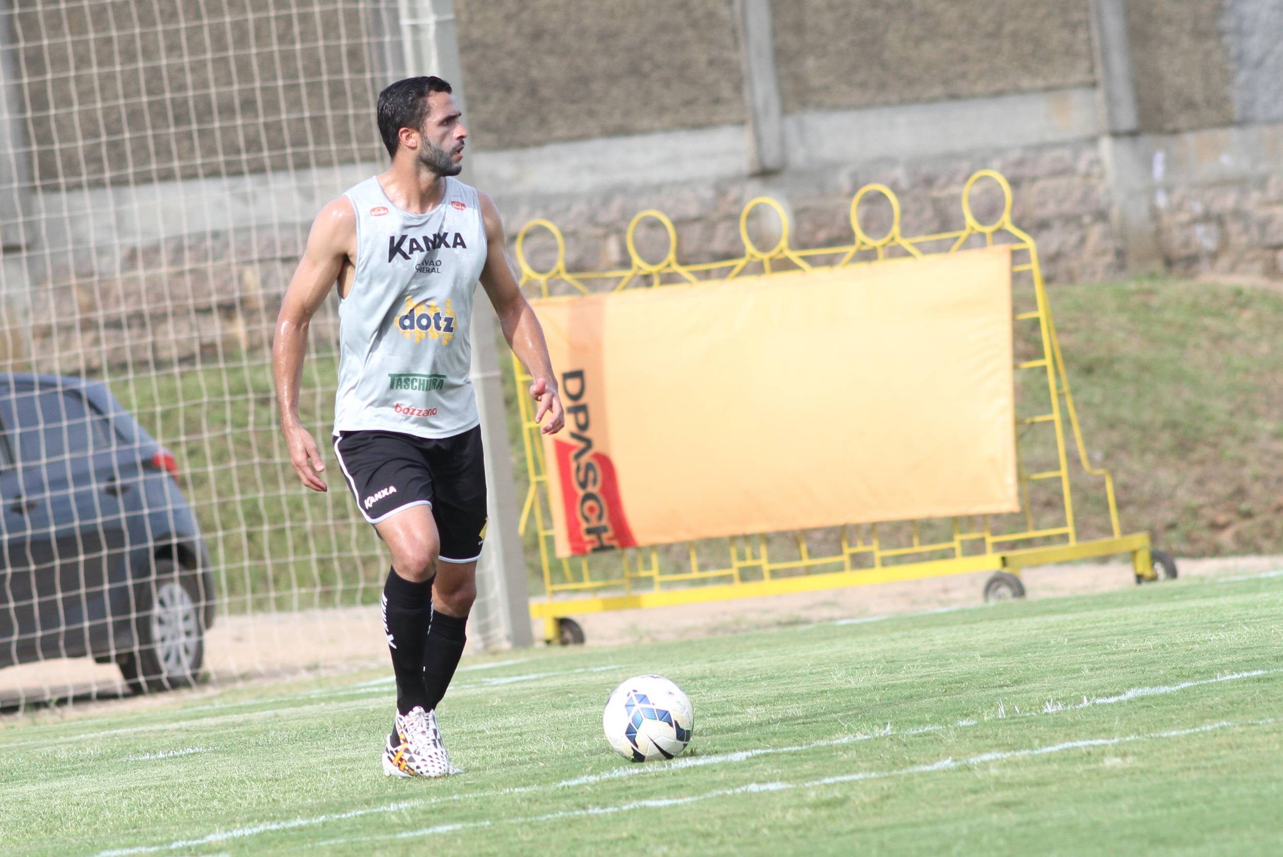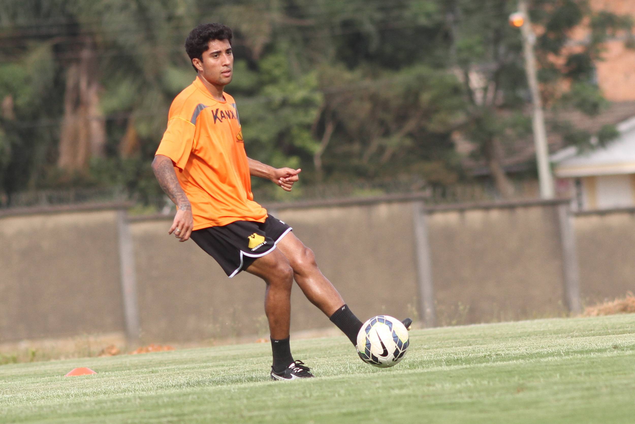 Legenda: Atacante Andrew durante treino do Criciúma na tarde desta terça-feira (02/12) no CT