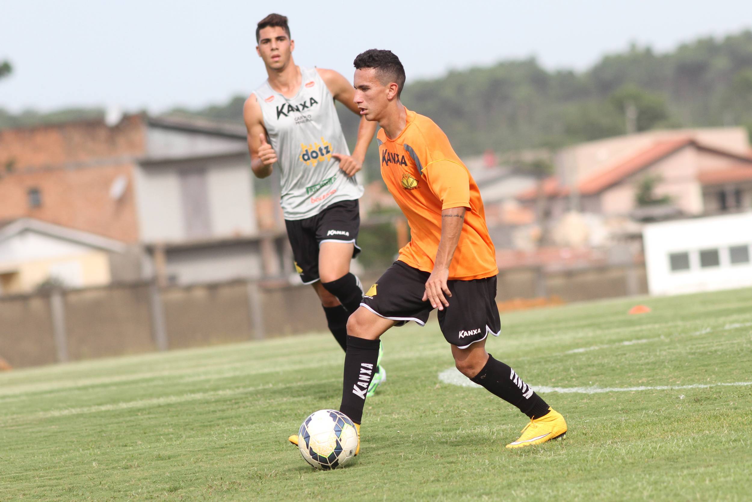 Legenda: Kalil e Barreto durante treino do Criciúma na tarde desta terça-feira (02/12) no CT