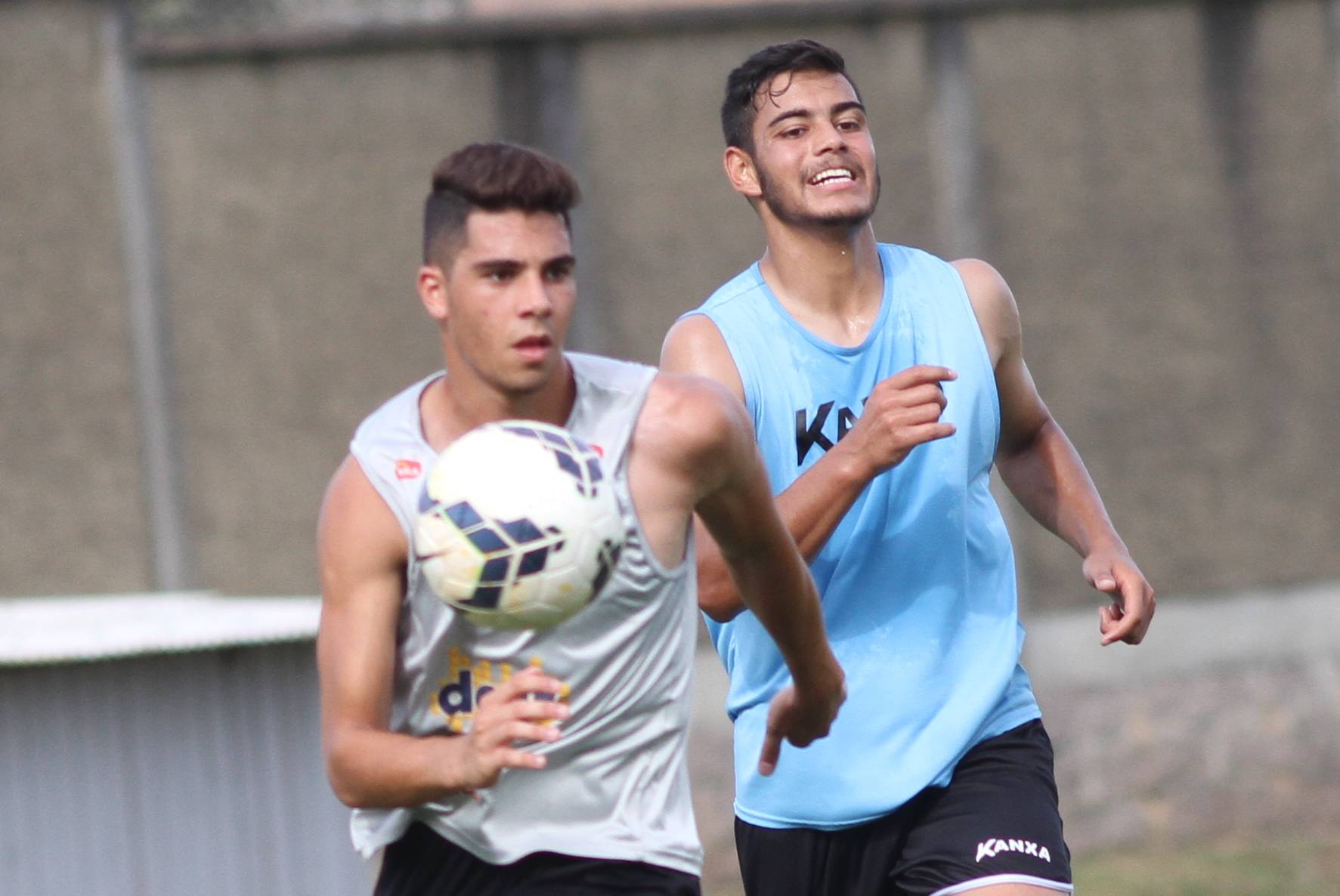 Legenda: Mota e Lucca durante treino do Criciúma na tarde desta terça-feira (02/12) no CT