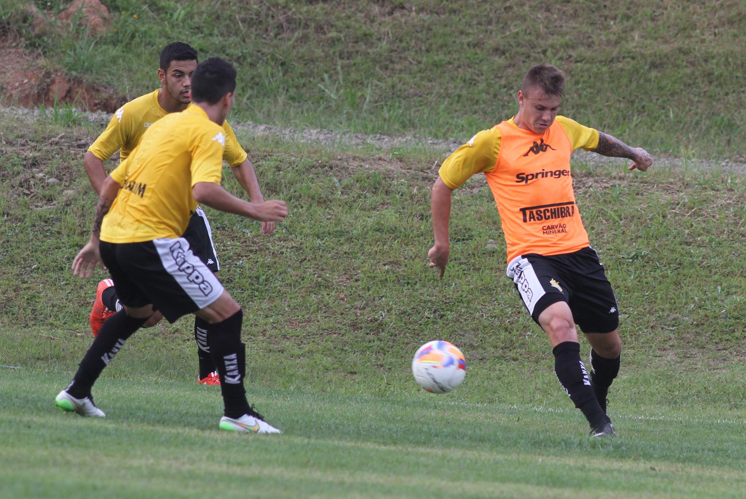 Legenda: durante treino do Criciúma na tarde desta terça-feira (14/04) no Centro de Treinamento, no bairro Cristo Redentor