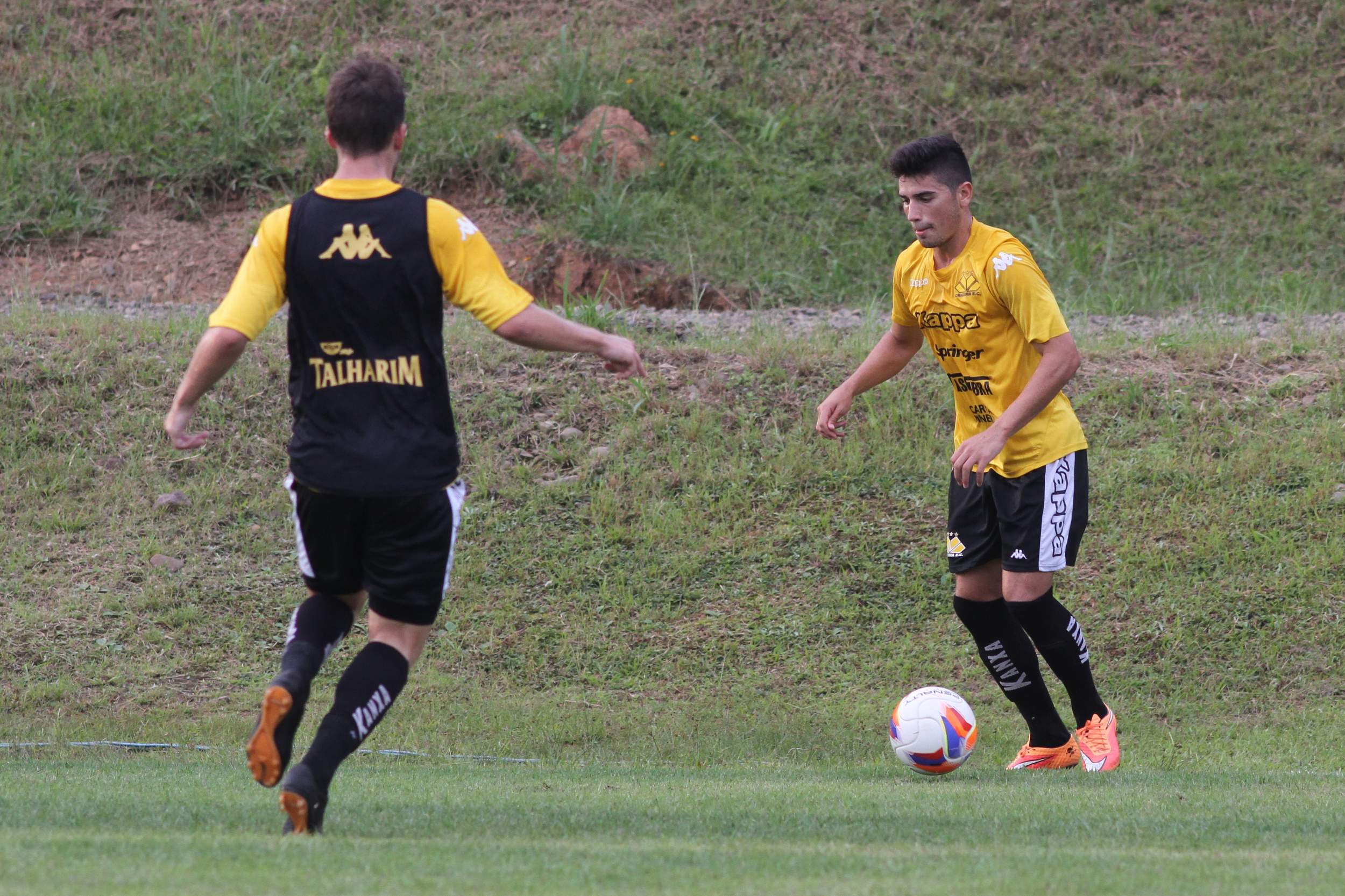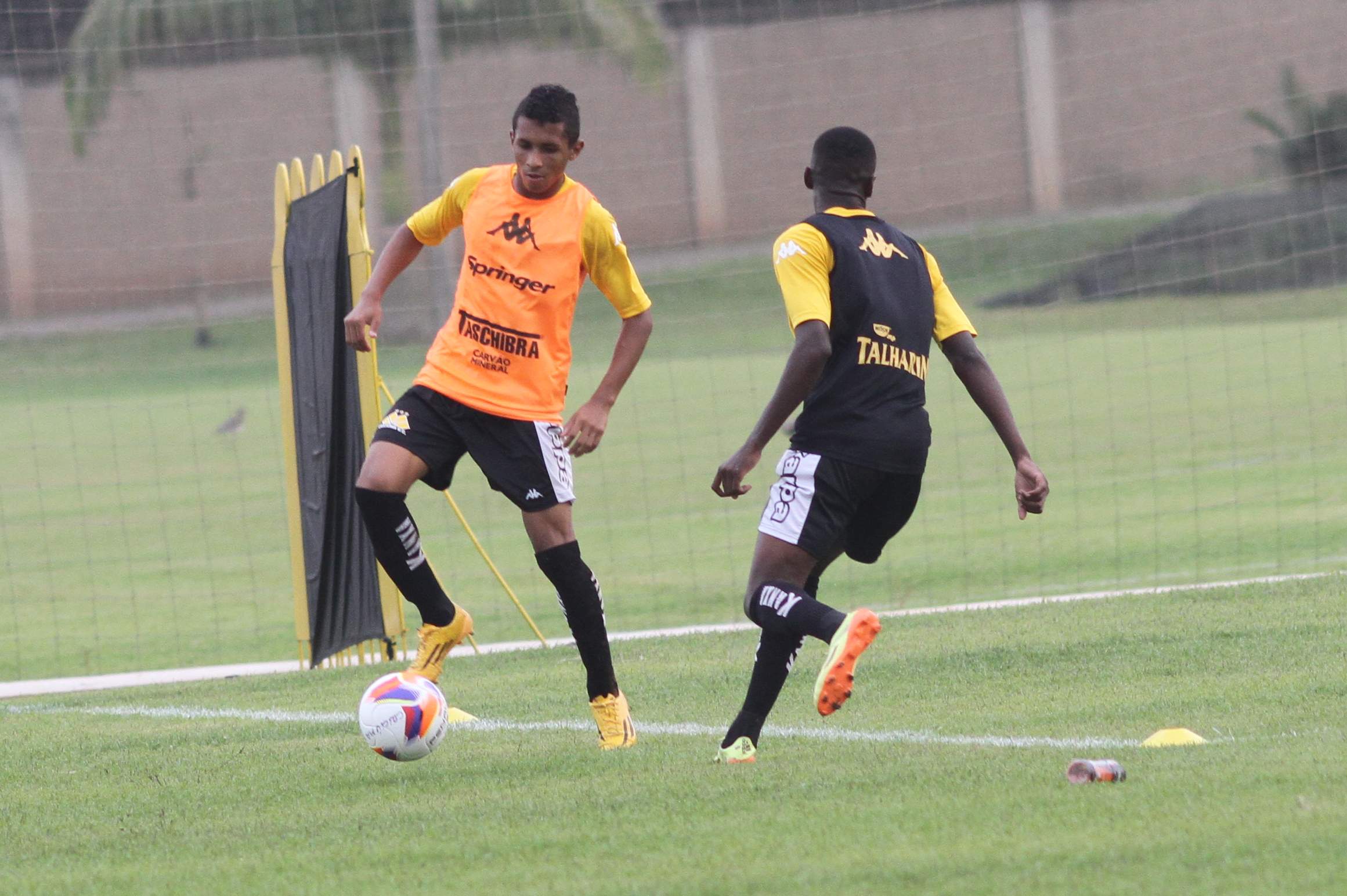 Legenda: Vitor Michels e Joílson durante treino do Criciúma na tarde desta terça-feira (14/04) no Centro de Treinamento, no bairro Cristo Redentor