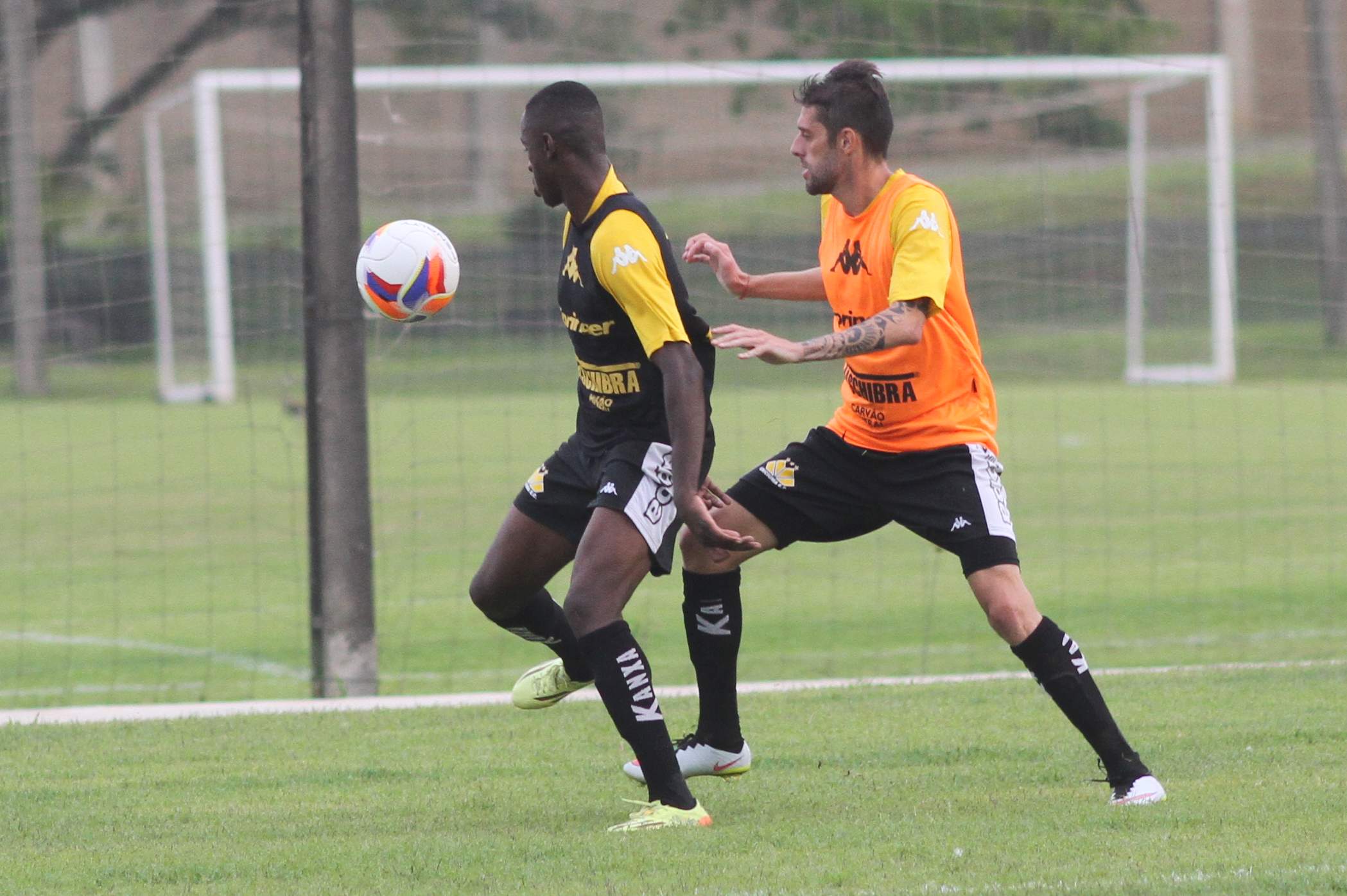 Legenda: Jefferson e Bruno Mazzuchello durante treino do Criciúma na tarde desta terça-feira (14/04) no Centro de Treinamento, no bairro Cristo Redentor