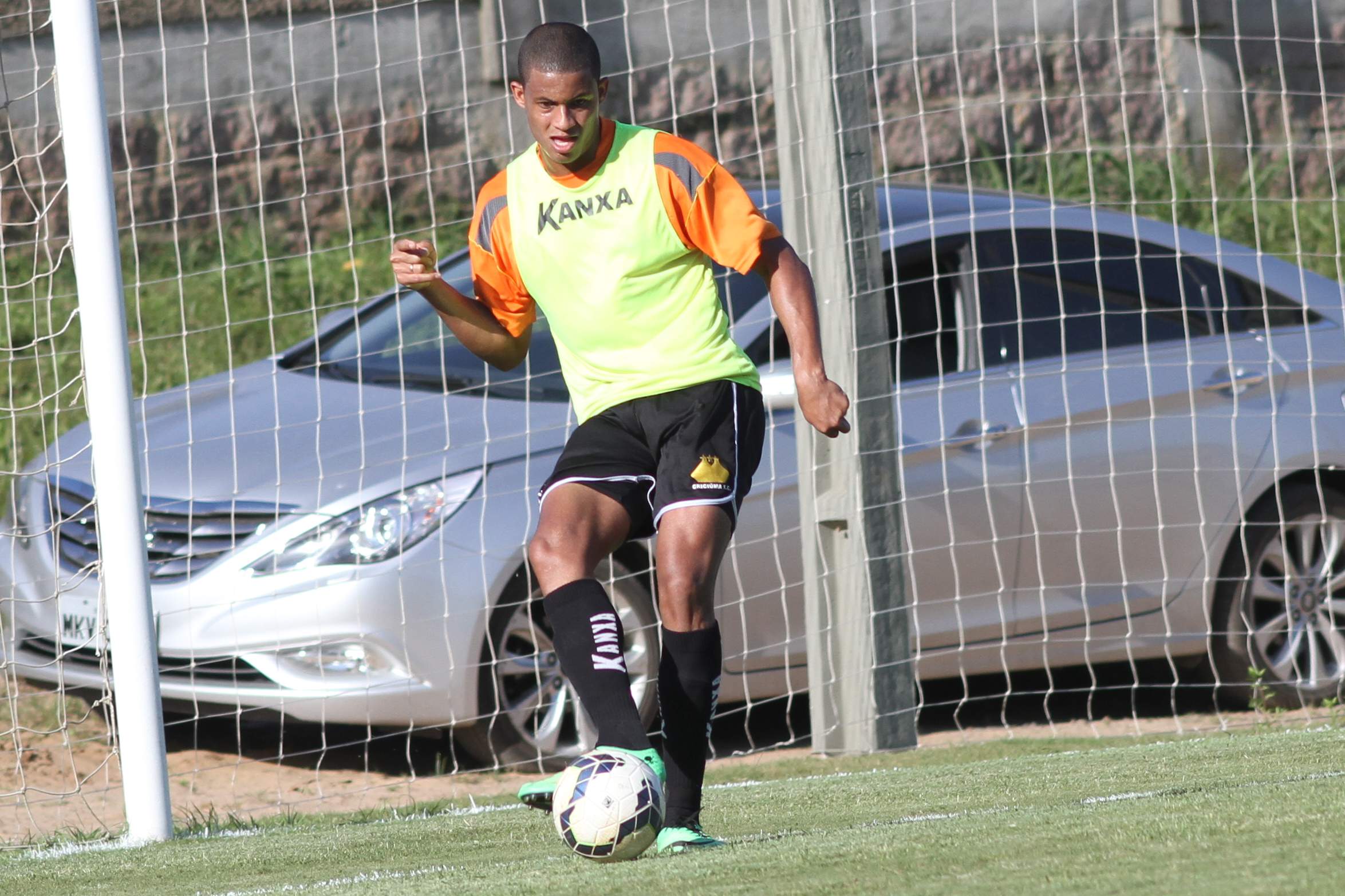 Legenda: Zagueiro Joílsondurante treino do Criciúma na tarde desta terça-feira (18/11) no Centro de Treinamento, no bairro Cristo Redentor