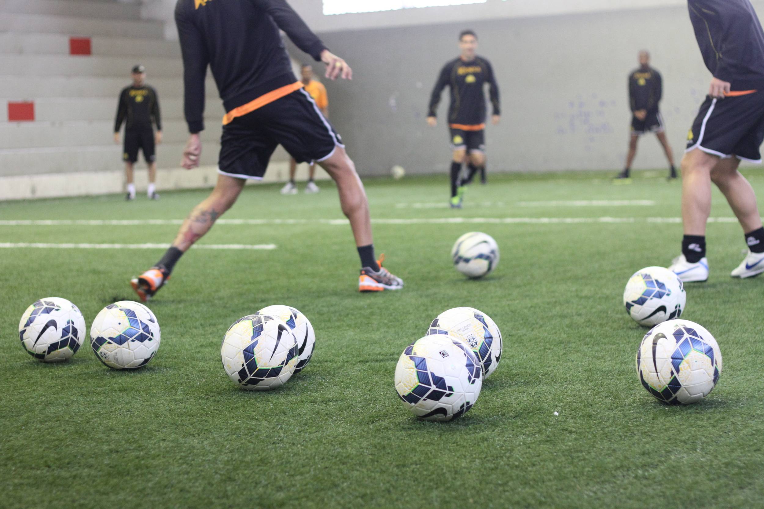Legenda: Atletas durante treino do Criciúma no ginásio do estádio em anexo ao estádio Heriberto Hülse na manhã desta sexta-feira (14/11)