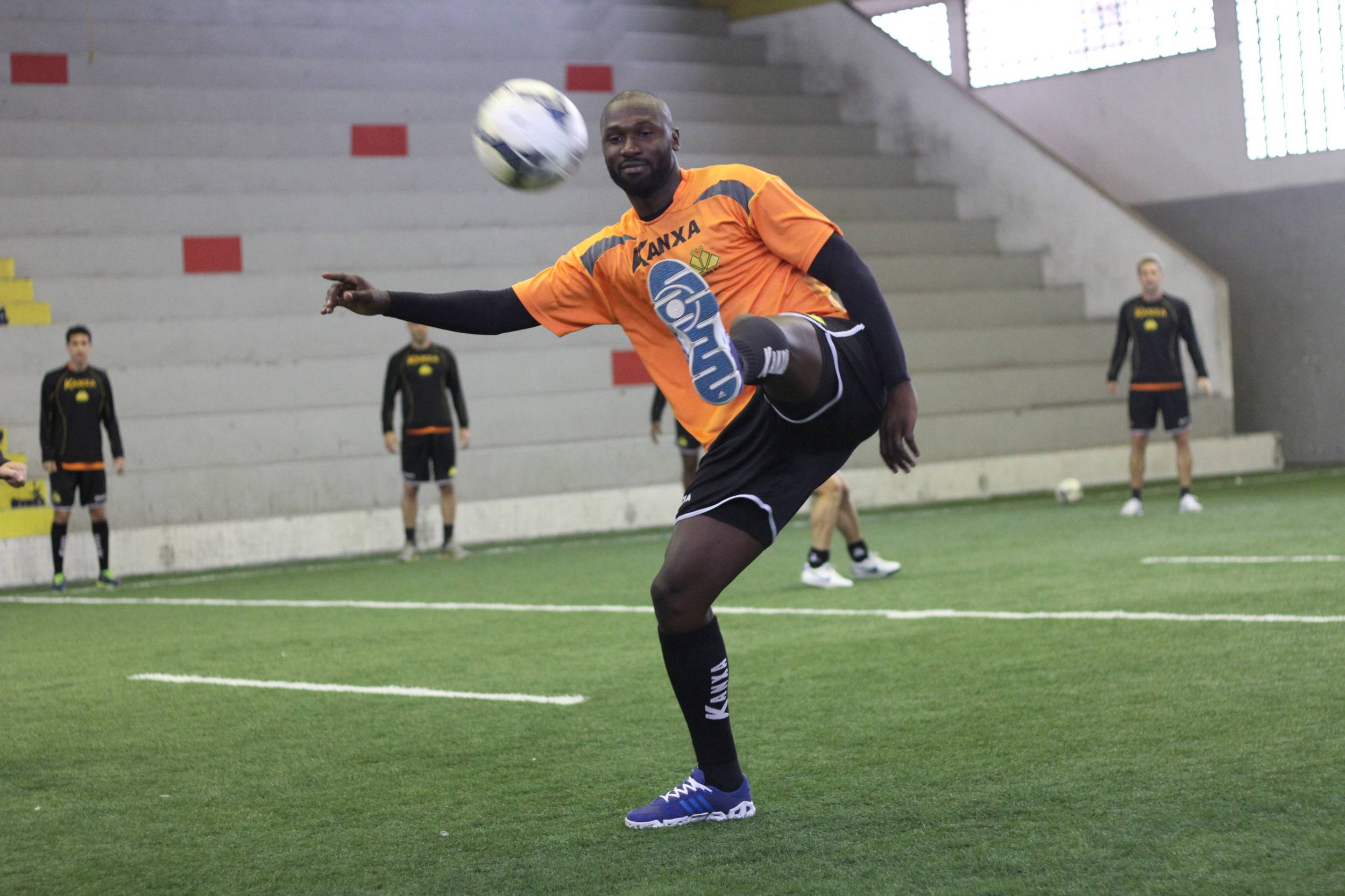 Legenda: Volante Rodrigo Souza durante treino do Criciúma no ginásio do estádio em anexo ao estádio Heriberto Hülse na manhã desta sexta-feira (14/11)