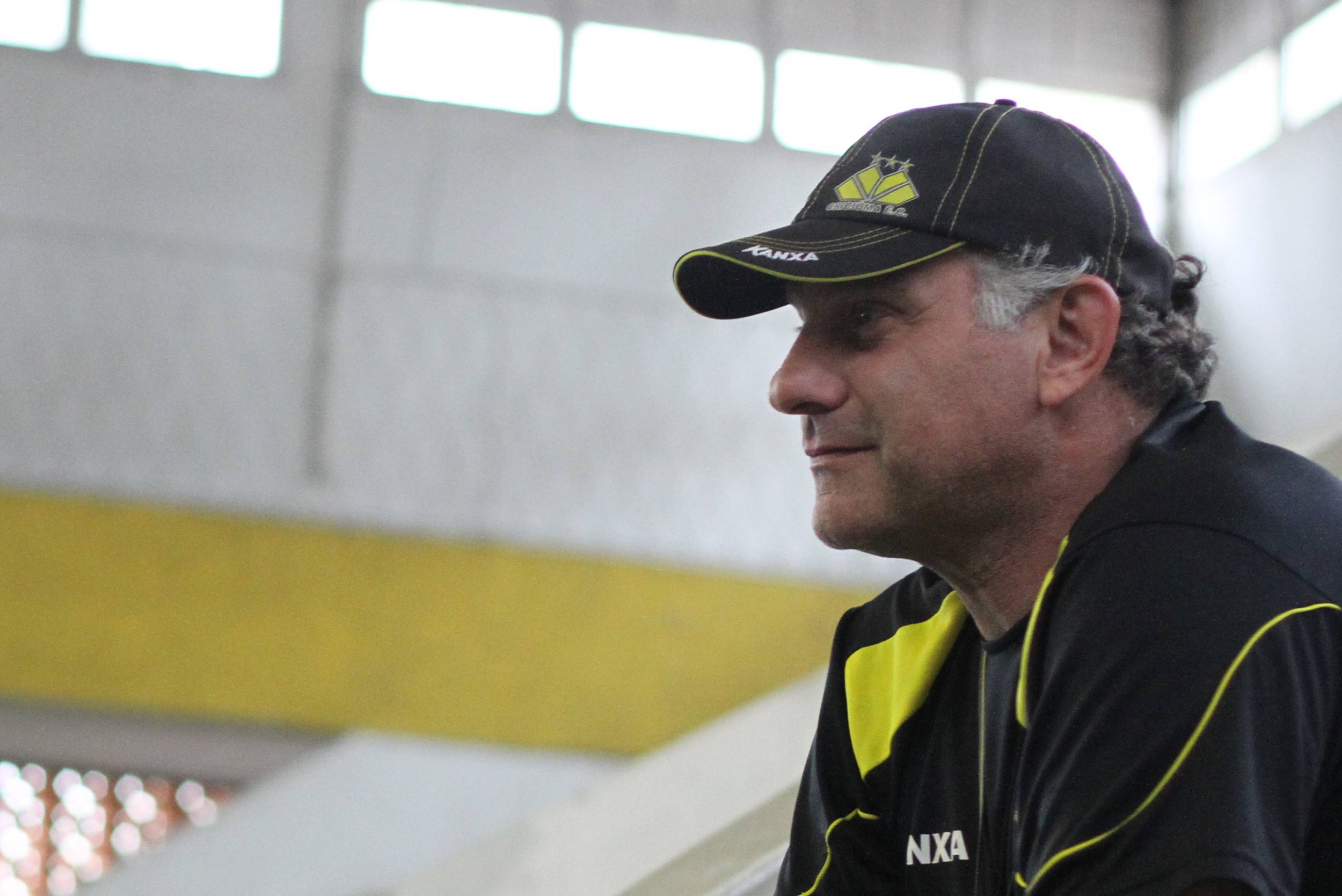 Legenda: Técnico Toninho Cecílio durante treino do Criciúma no ginásio do estádio em anexo ao estádio Heriberto Hülse na manhã desta sexta-feira (14/11)
