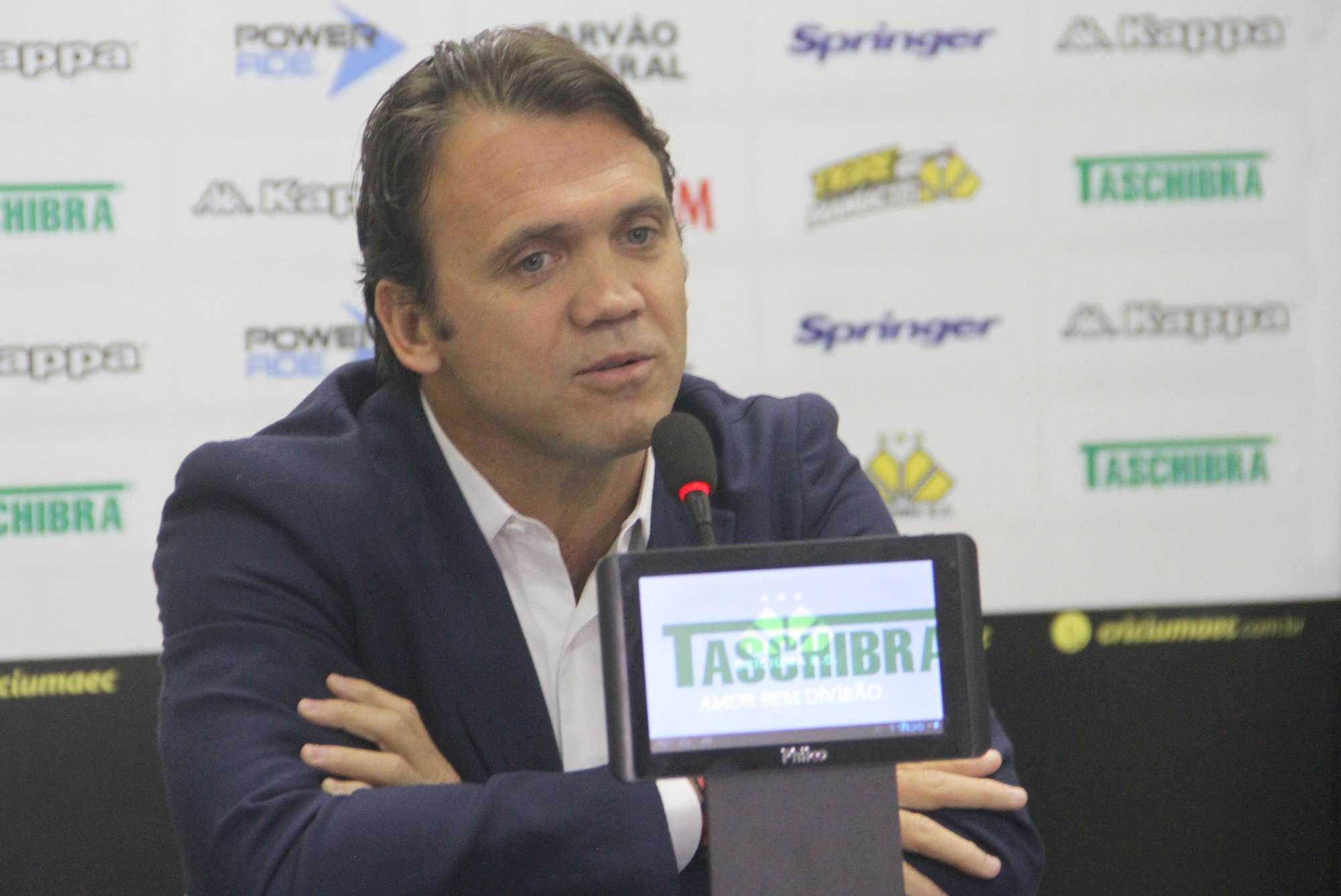 Legenda: Petkovic foi apresentado oficialmente como novo técnico do Criciúma na manhã desta quinta-feira (18/06), na Sala de Imprensa Clésio Búrigo, no estádio Heriberto Hülse