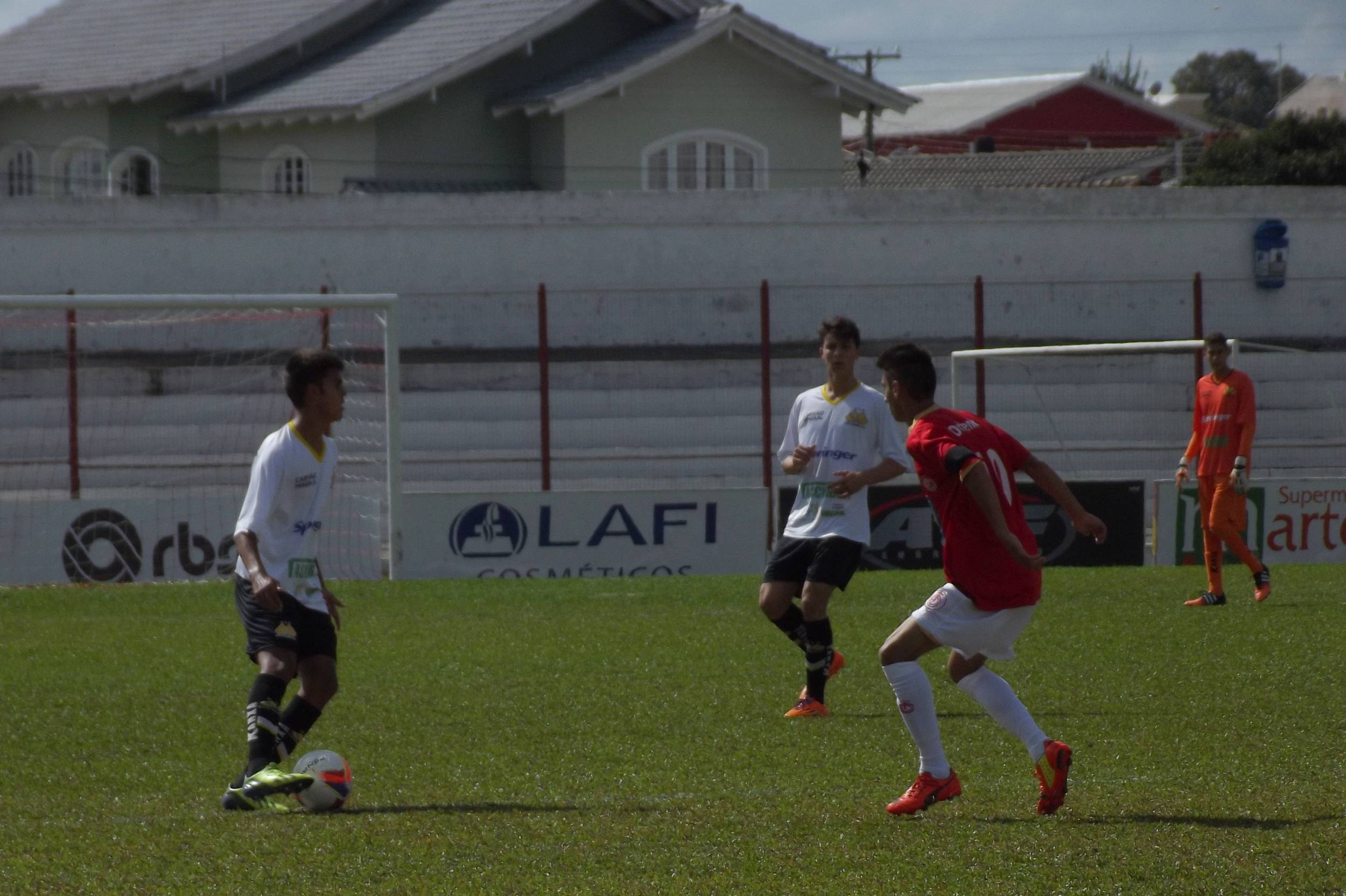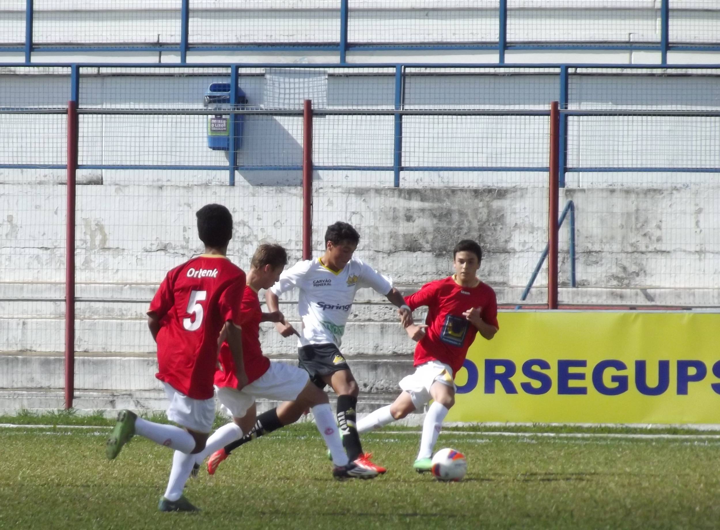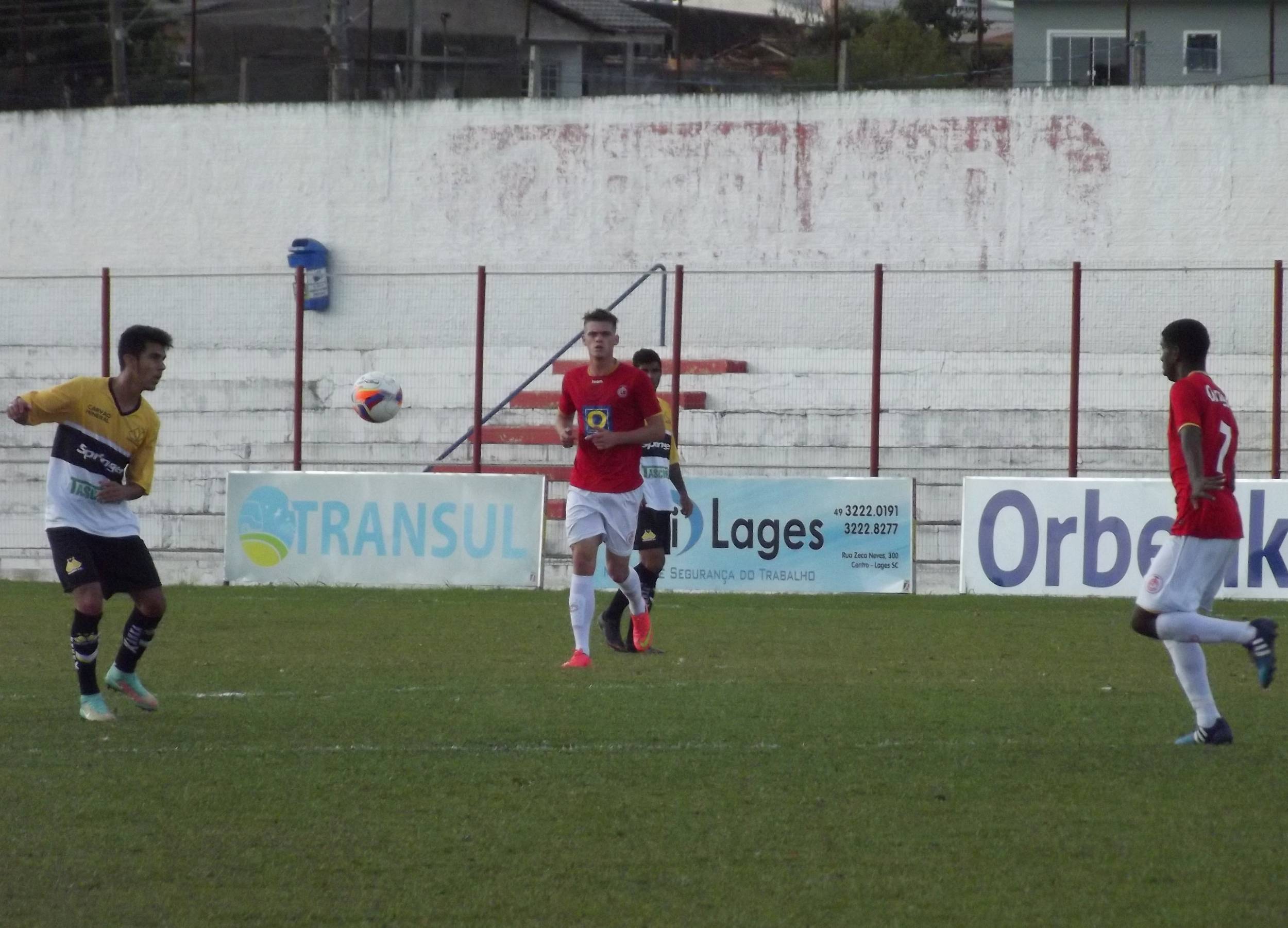 Legenda: Jogadores do Sub-17 durante o jogo desta sexta-feira (01/05), diante do Internacional de Lages, no estádio Vidal Ramos Júnior.