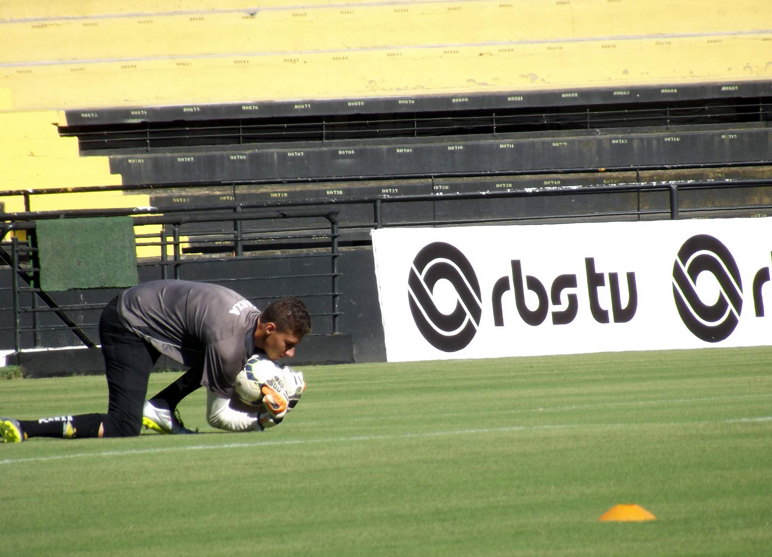 Legenda: Goleiro Vinicius durante o treino desta sexta-feira (20/03).
