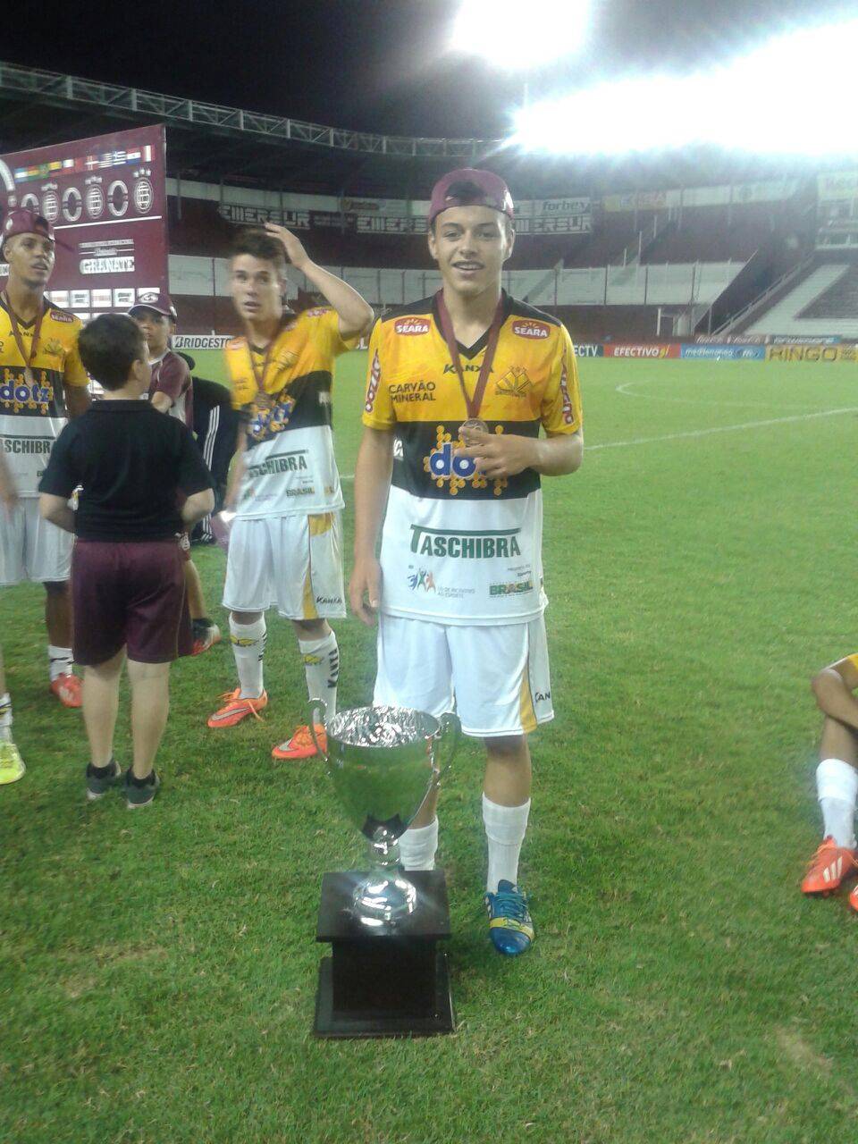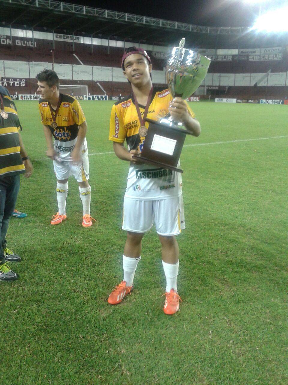 Legenda: David e o coordenador das Categorias de Base do Criciúma, Armando Desassards, depois da conquista do Torneio Internacional nesta terça-feira (16/12).