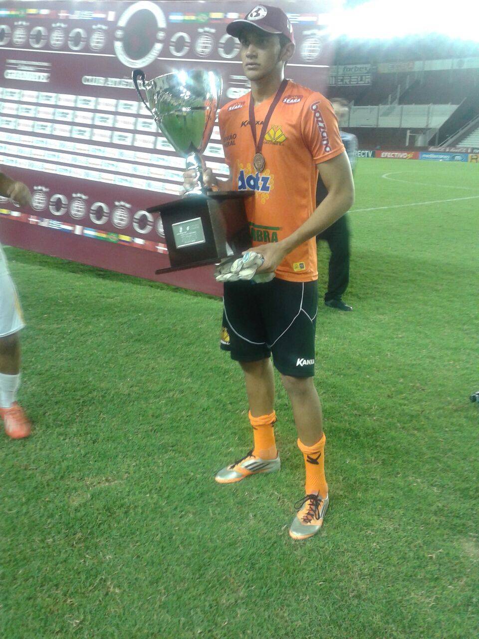 Legenda: Goleiro David depois da conquista do Torneio Internacional nesta terça-feira (16/12).
