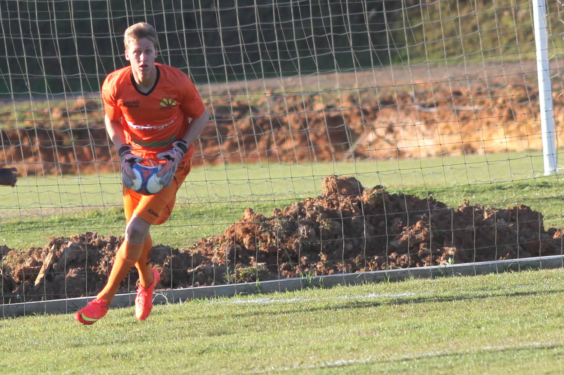 Legenda: Goleiro David durante jogo entre Criciúma e Inter de Lages pelo Campeonato Catarinense Sub-20 realizado na tarde deste sábado (04/07) no Centro de Treinamento, no bairro Cristo Redentor