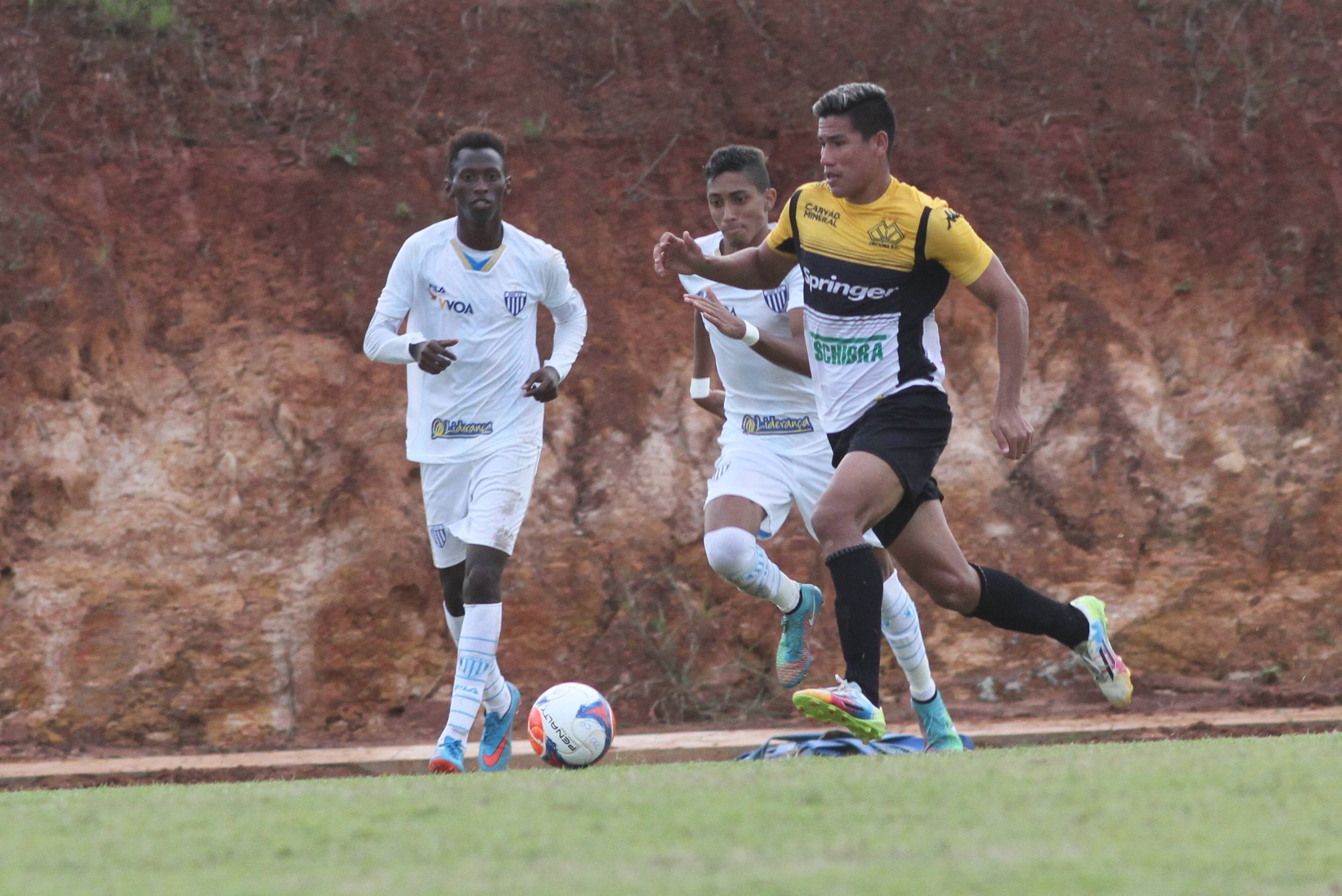 Legenda: Lateral direito Mota em lance durante o jogo Criciúma e Avaí pelo Campeonato Catarinense Sub-20 na tarde desta sexta-feira (15/05) no Centro de Treinamento, no bairro Cristo Redentor