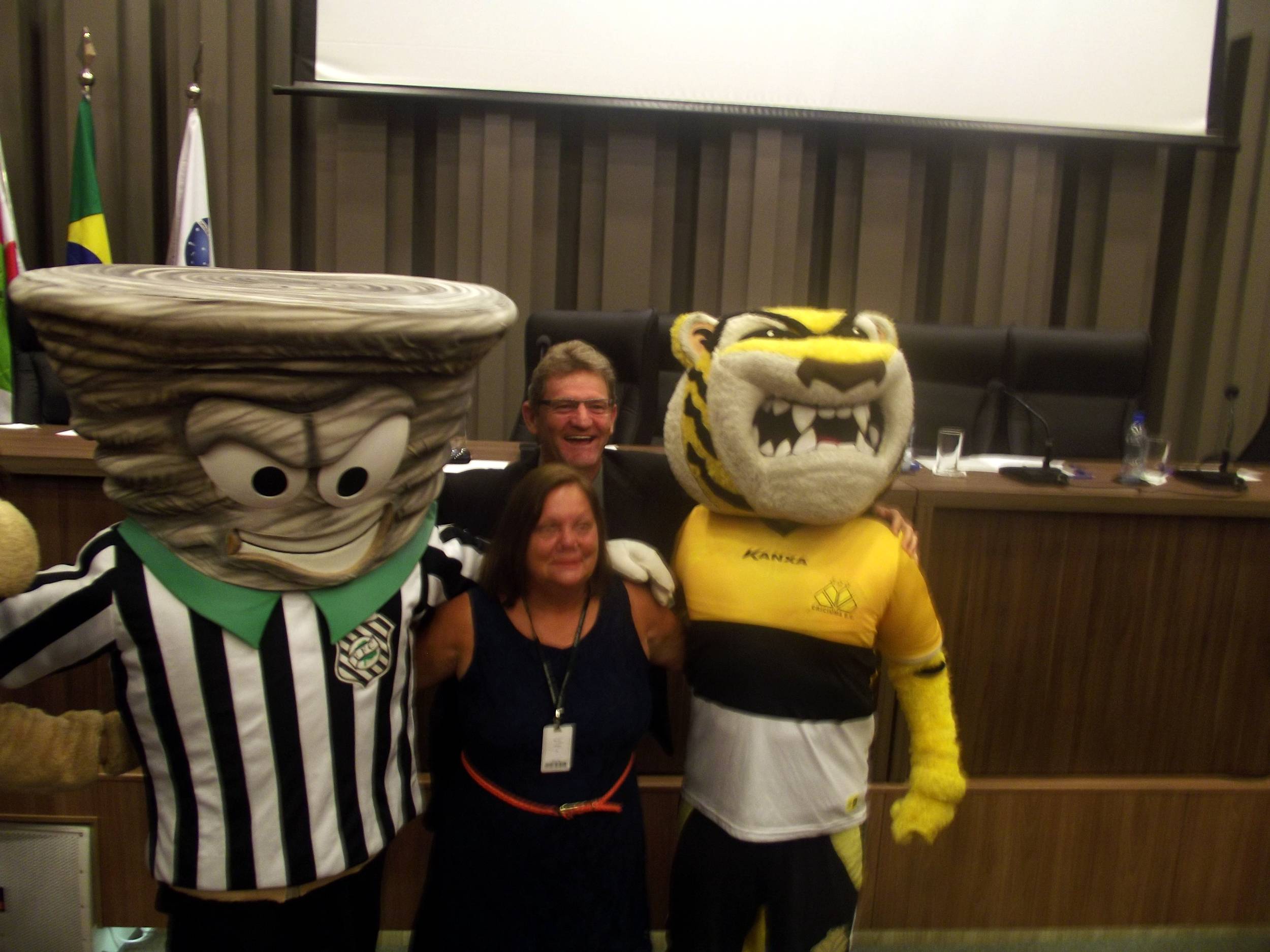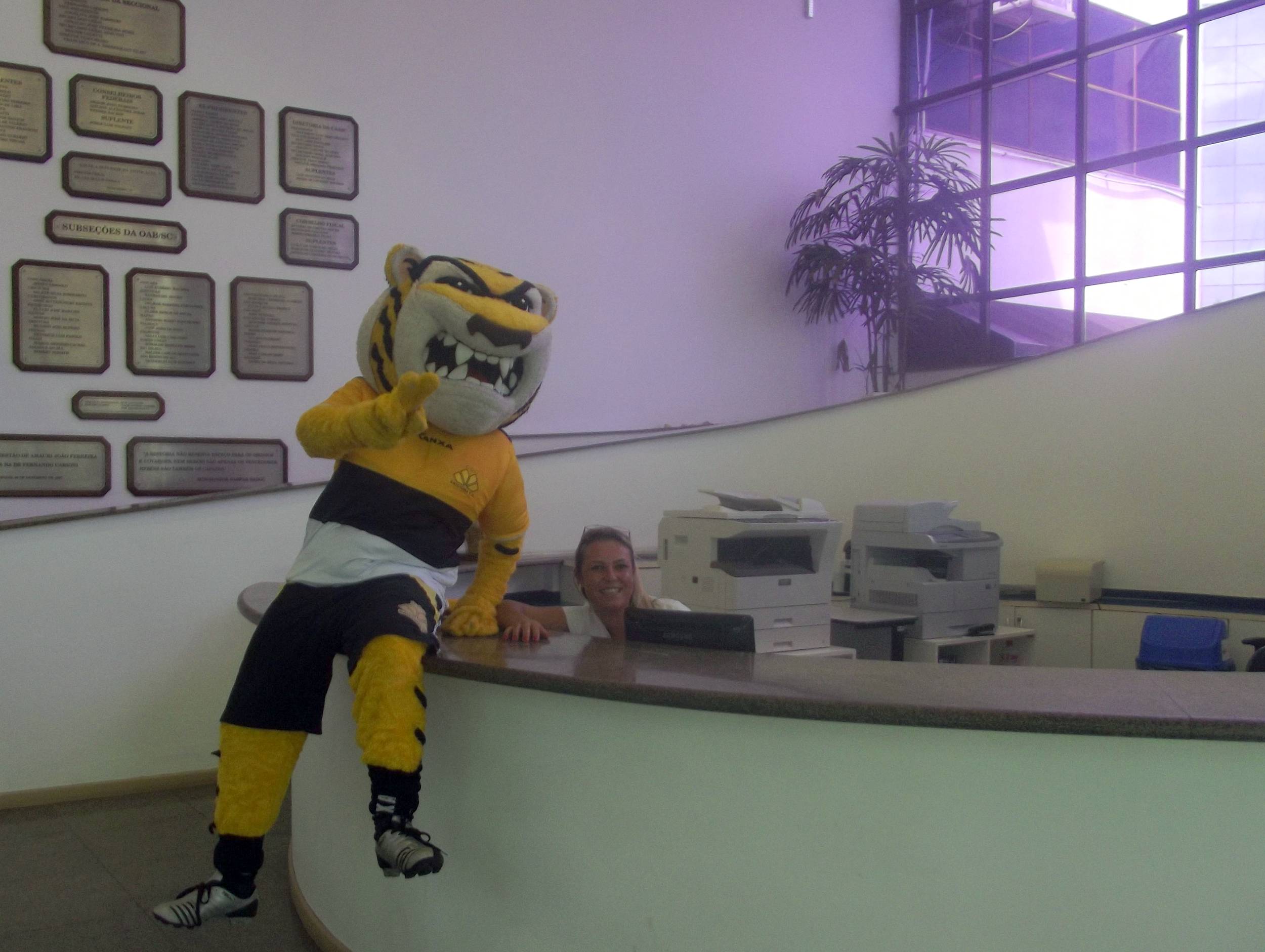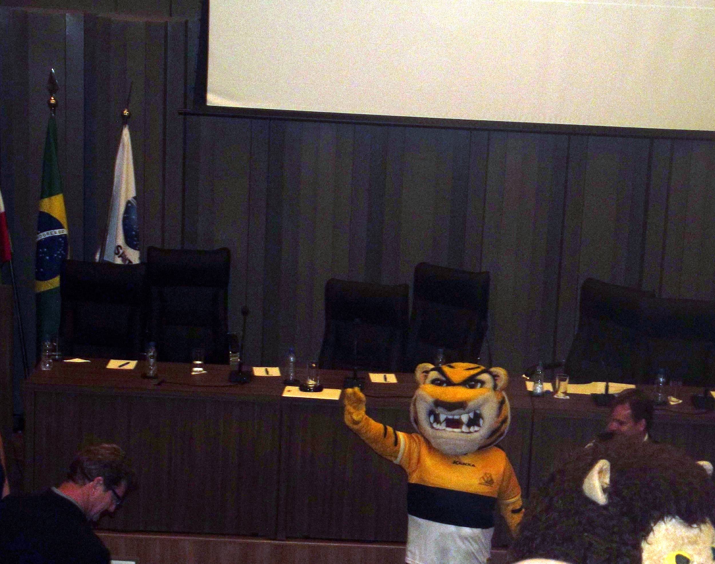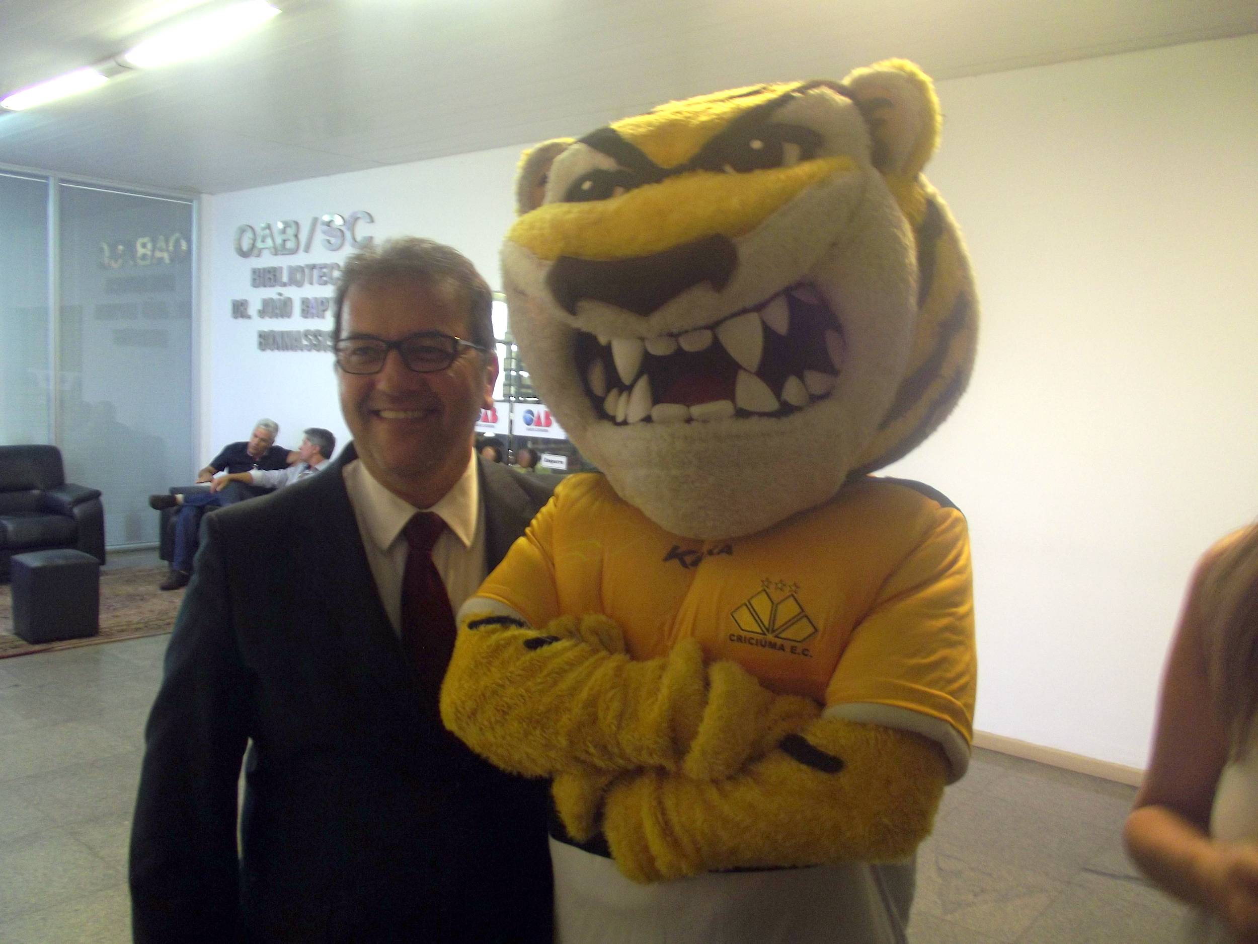 O mascote do Criciúma, o Tigrão, esteve presente no evento da Ordem dos Advogados do Brasil de Santa Catarina (OAB/SC) de lançamento da Campanha Contra a Violência no Futebol. O encontro ocorreu na manhã desta quarta-feira (28/01), no auditório da OAB-SC, em Florianópolis.