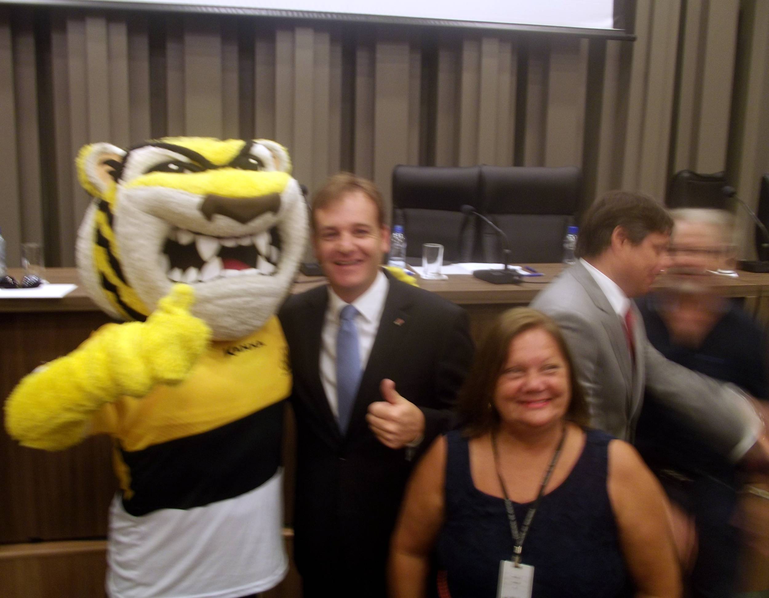 Legenda: Presidente da OAB/SC, Dr. Tullo Cavallazzi Filho, com o Tigrão no evento.