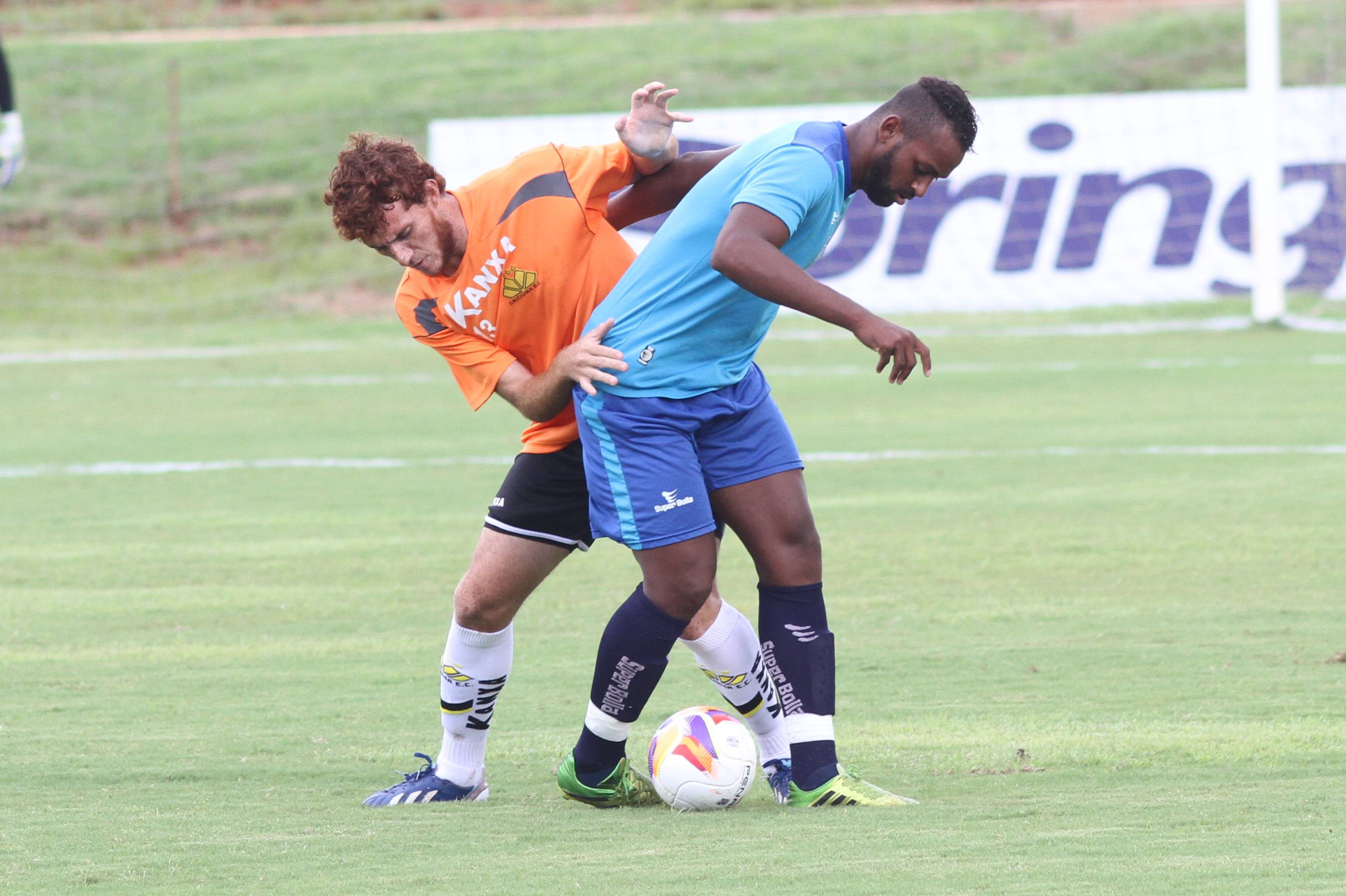 Legenda: Zagueiro Ianson durante a segunda parte do jogo treino entre Criciúma e Cruzeiro (RS) na tarde desta quarta-feira (21/01) no Centro de Treinamento, no bairro Cristo Redentor