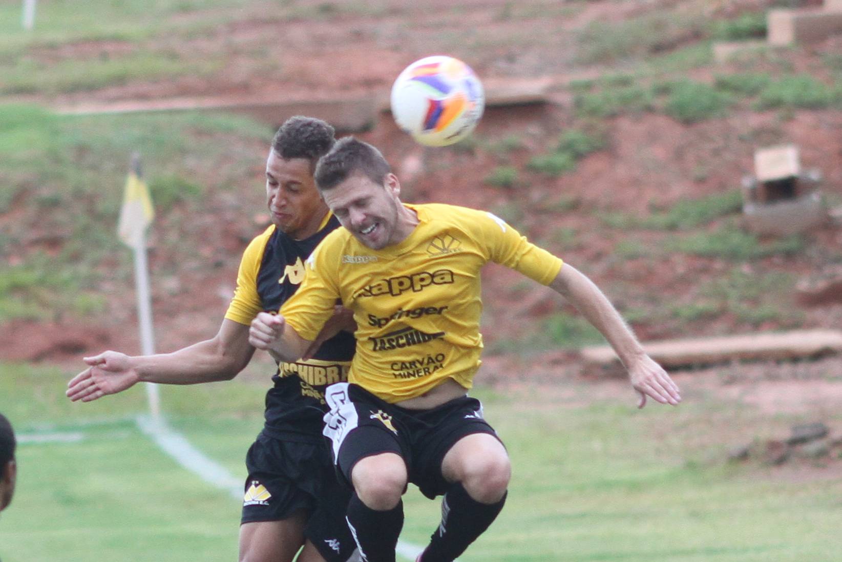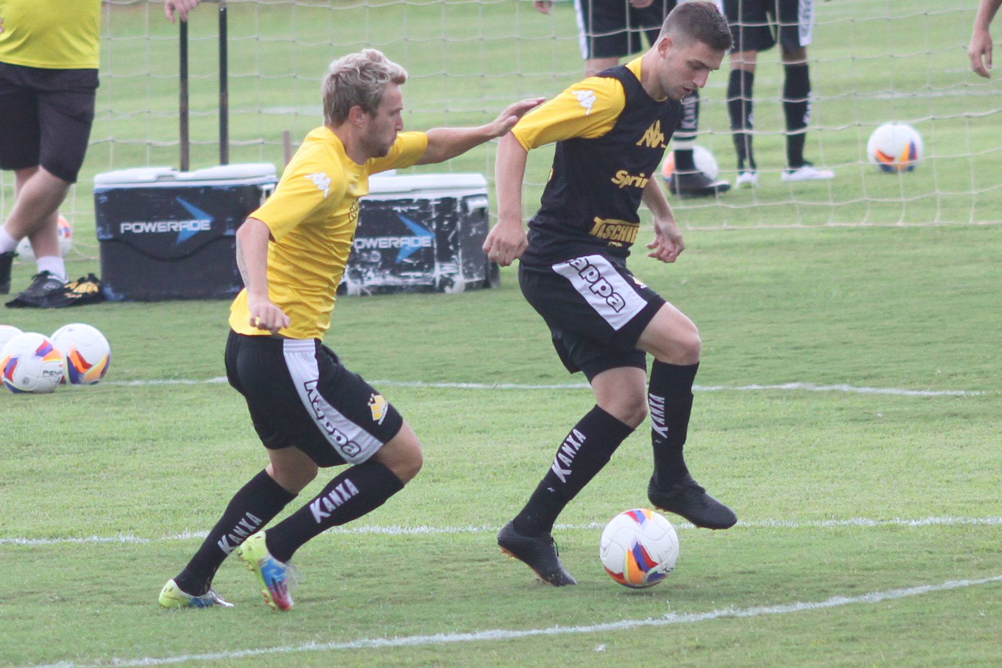 Legenda: Rafael Pereira e Vitor Michels durante treino do Criciúma na tarde desta sexta-feira (06/03) no Centro de Treinamento, no bairro Cristo Redentor