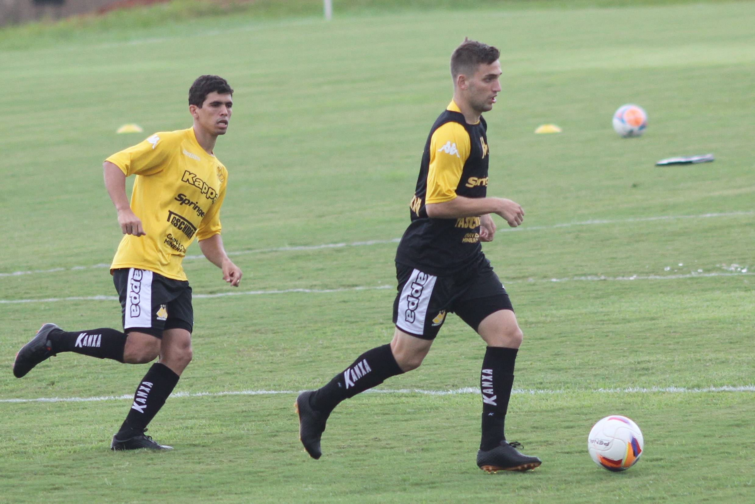 Legenda: Natan e Vitor Michels durante treino do Criciúma na tarde desta sexta-feira (06/03) no Centro de Treinamento, no bairro Cristo Redentor