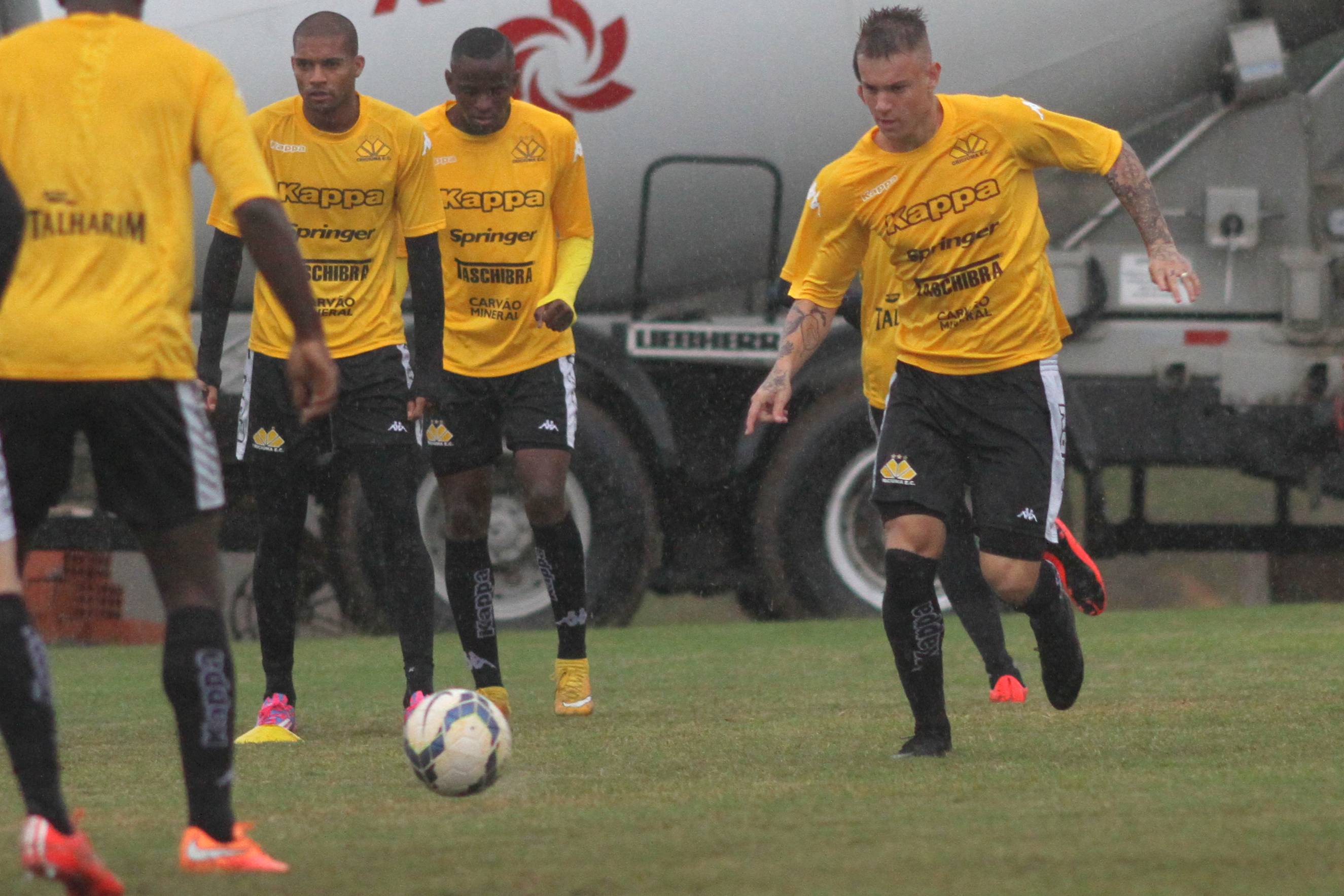 Legenda: Róger Guedes durante treino do Criciúma na tarde desta segunda-feira (20/07) no Centro de Treinamento, no bairro Cristo Redentor